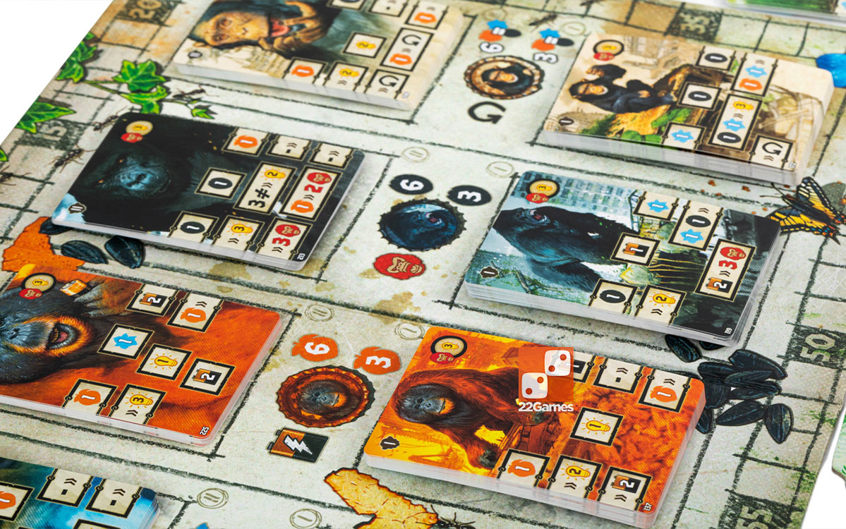- 120 карт обезьян (шимпанзе, гориллы, мандрилы и орангутаны) 1-го и 2-го уровней,