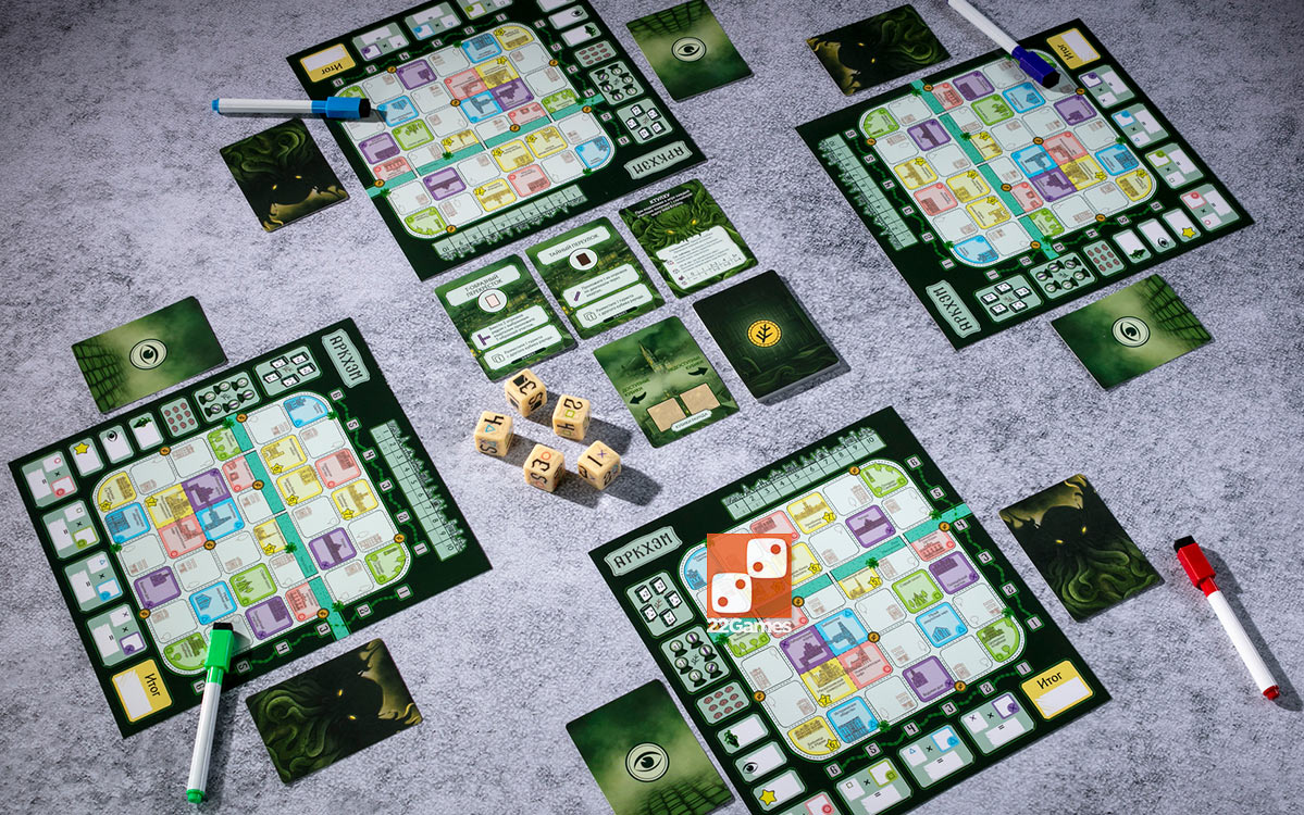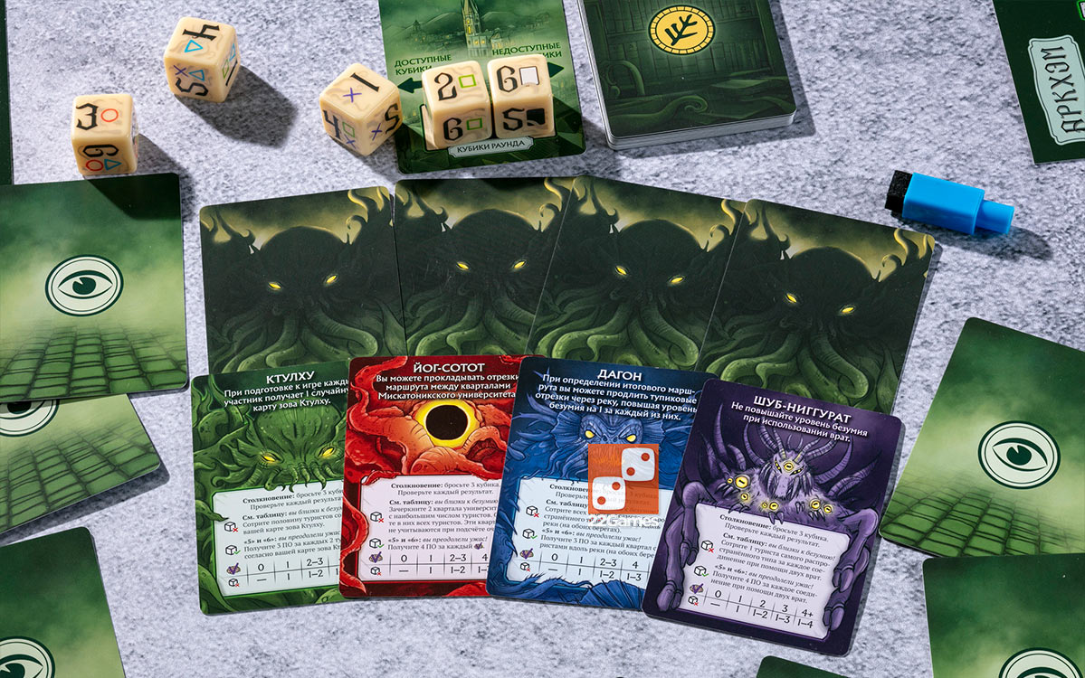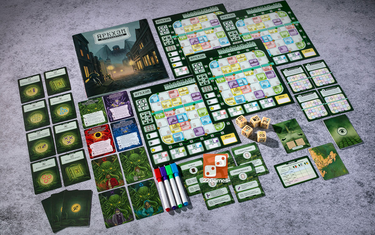 - Красота и надёжность компонентов. Ламинированные планшеты, яркие маркеры и крупные кастомные кубики радуют глаз и выдерживают сотни маршрутов, которые вы проведёте по улицам этого жуткого города.
