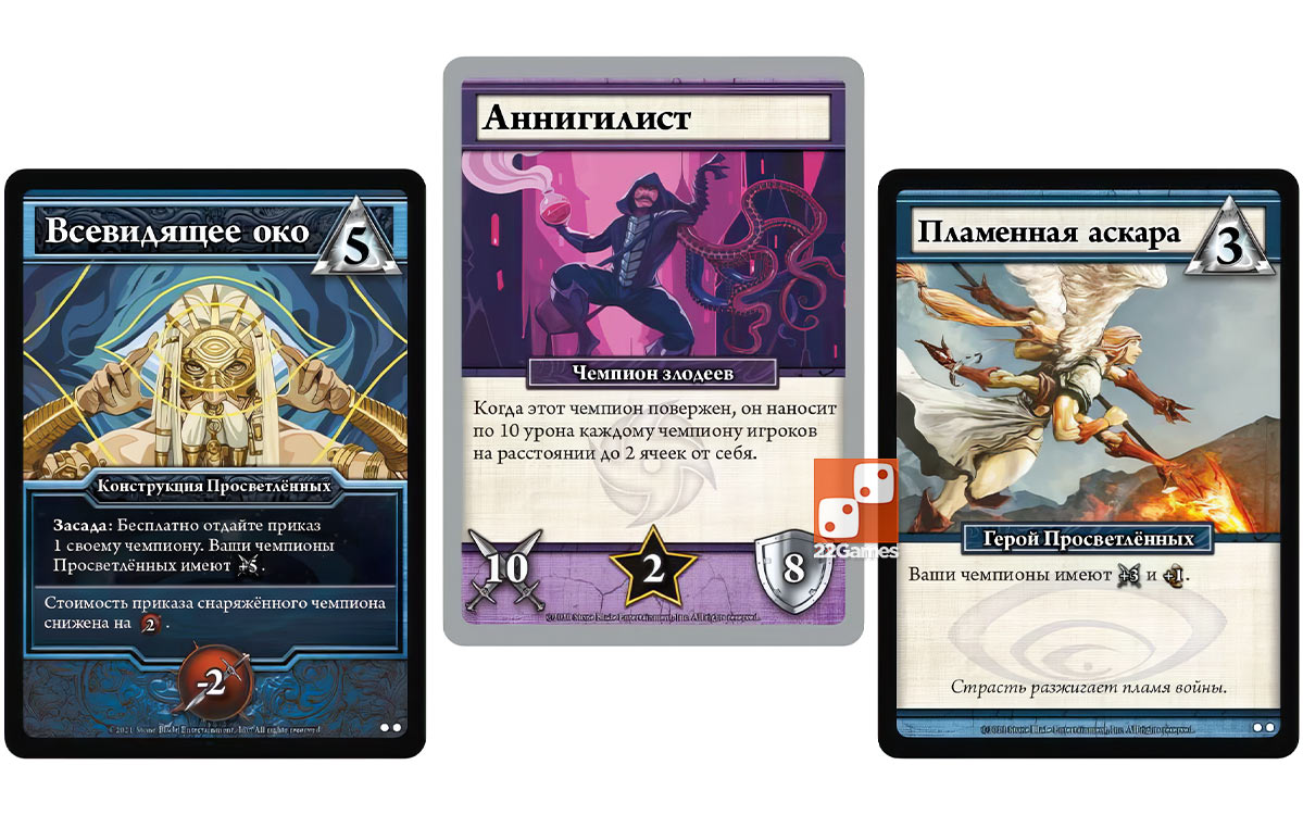 - Активируете чемпионов на поле, перемещаете их и атакуете соперников