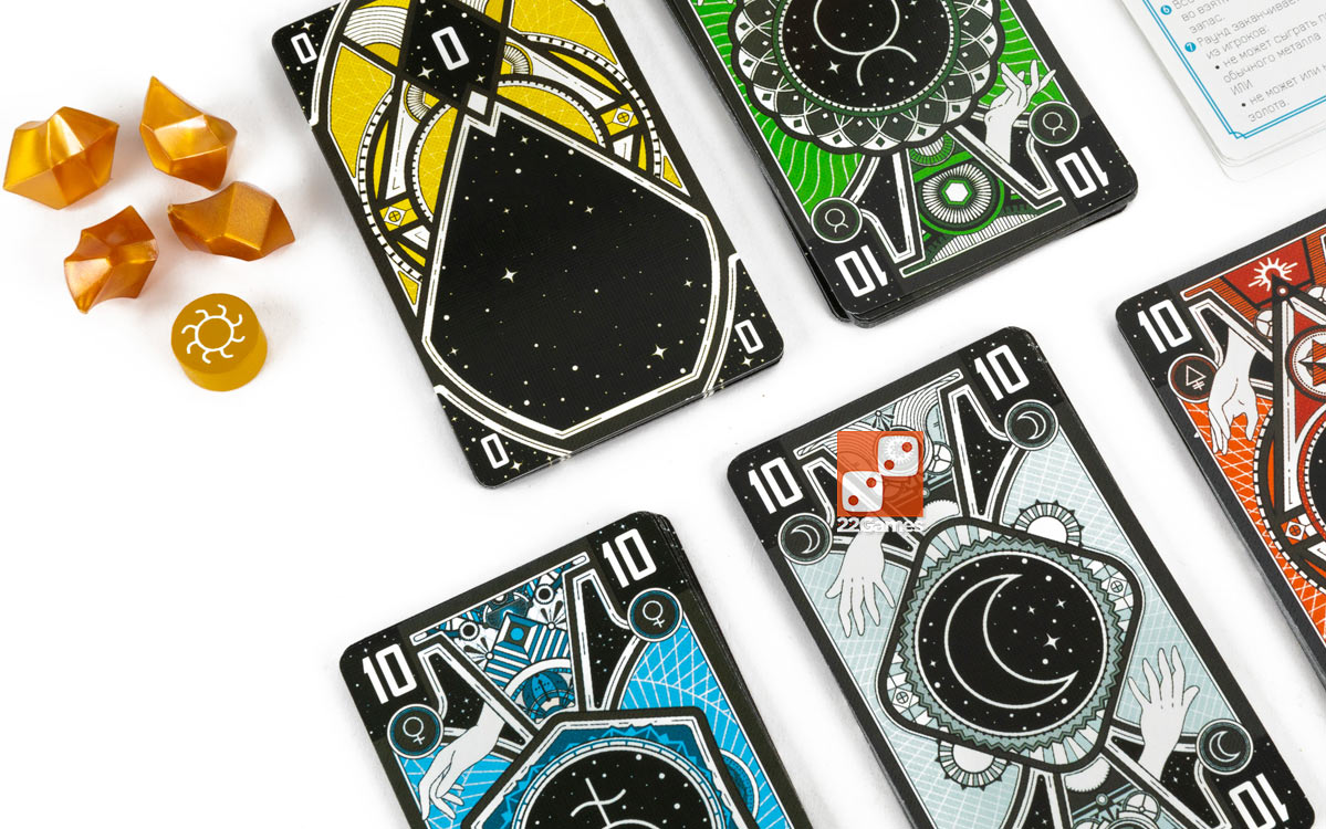 «Аурум» – это игра с механикой взяток, в которой вы выступаете в роли алхимиков, преобразующих металлы в золото. Вы зарабатываете очки, получая золото и верно предполагая количество взяток, которые сможете выиграть в каждом раунде.