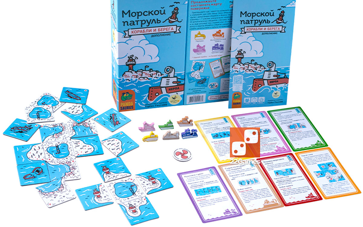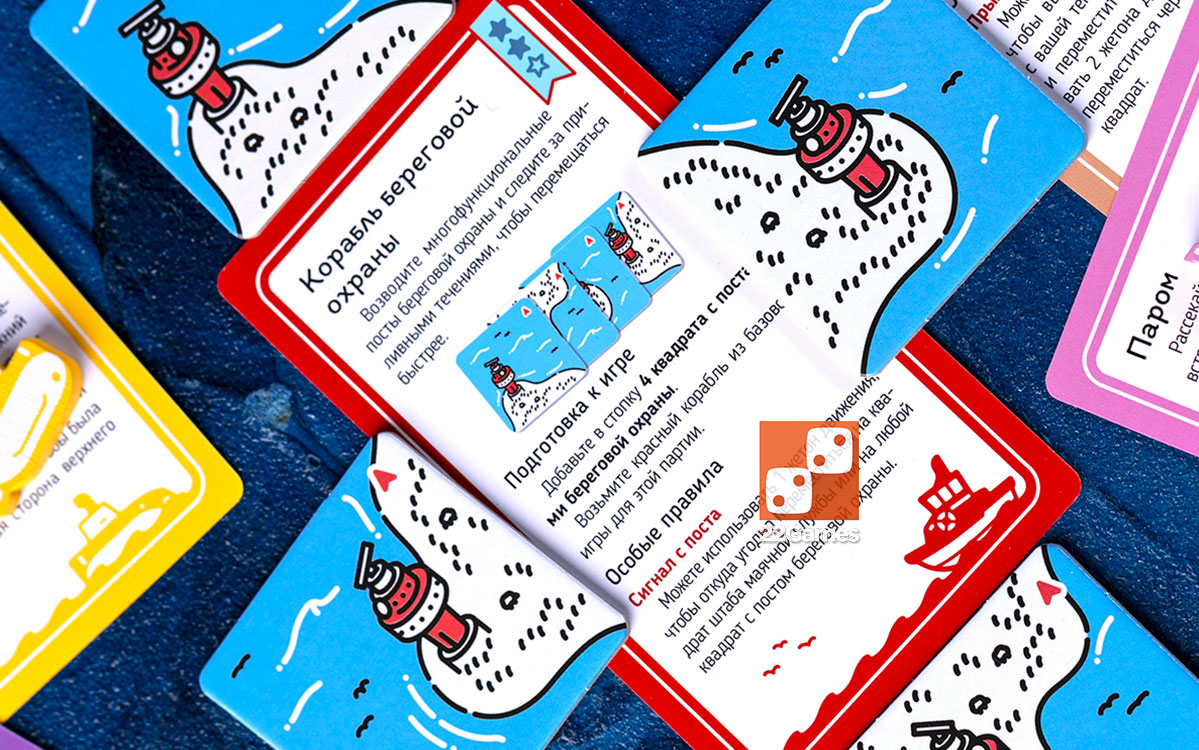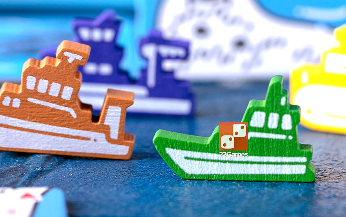 Теперь у каждого игрока в партии появляется корабль с асимметричной способностью (а всего их 7!). Например, экспедиционный катер ограничен в перемещении, но зато позволяет выкладывать жетоны через сушу. А крановое судно строит ветрогенераторы, которые, наоборот, делают его более гибким в перемещении. Ну и, конечно, приносят победные очки! Всего корабли добавляют 20 новых квадратов, и благодаря этому стратегии становится многослойнее.