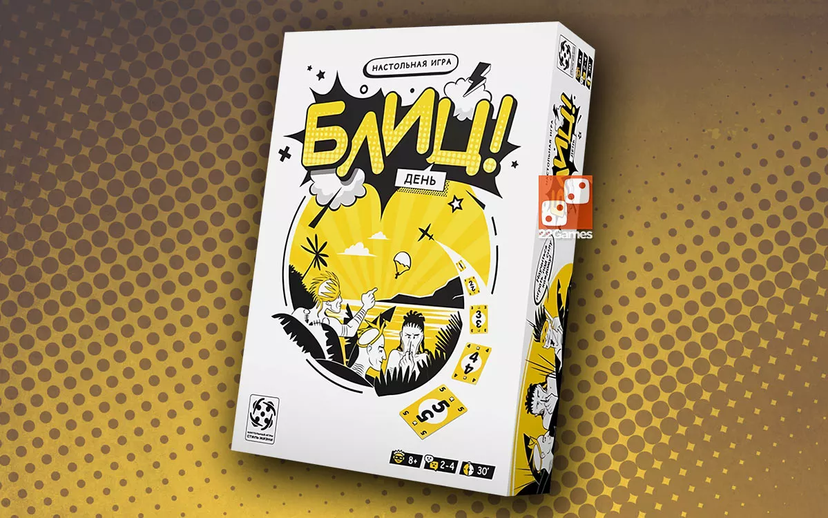 В настольной игре «Блиц! День» не так важна стратегия, скорее вам потребуются внимательность, быстрая реакция и даже ловкость. Эта энергичная игра развлечёт практически любую компанию, взбодрит, развеселит и оставит о себе много приятных воспоминаний… как минимум, всплеск адреналина вам обеспечен!
