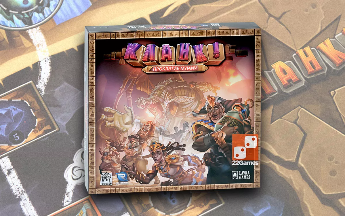 «Кланк! Проклятие мумии» – это дополнение для игры «Кланк! Подземное приключение». С этой коробочкой вы получите новое двустороннее поле и много новых приключений на вашу… голову.