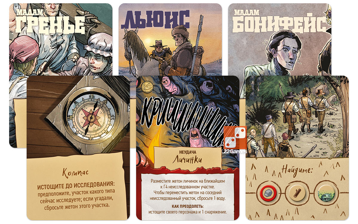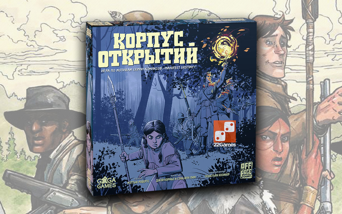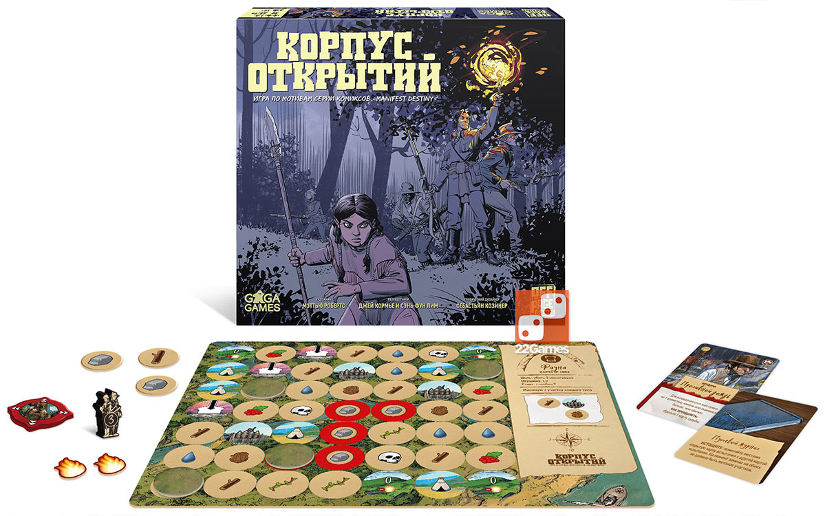 «Корпус Открытий» – кооперативная дедуктивная настольная игра в стилистике комикса Manifest Destiny, в которой игрокам предстоит пройти через мрачные земли Северной Америки, действуя сообща, принимая трудные решения и постоянно балансируя на грани выживания.