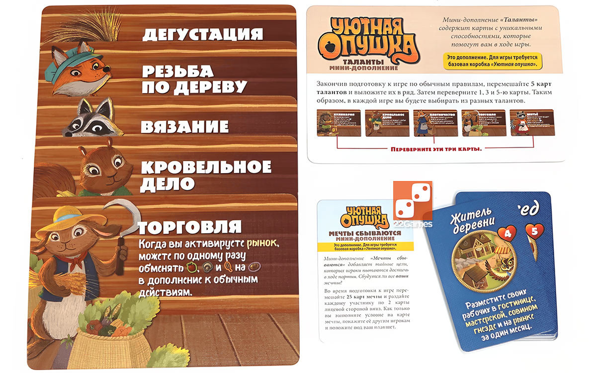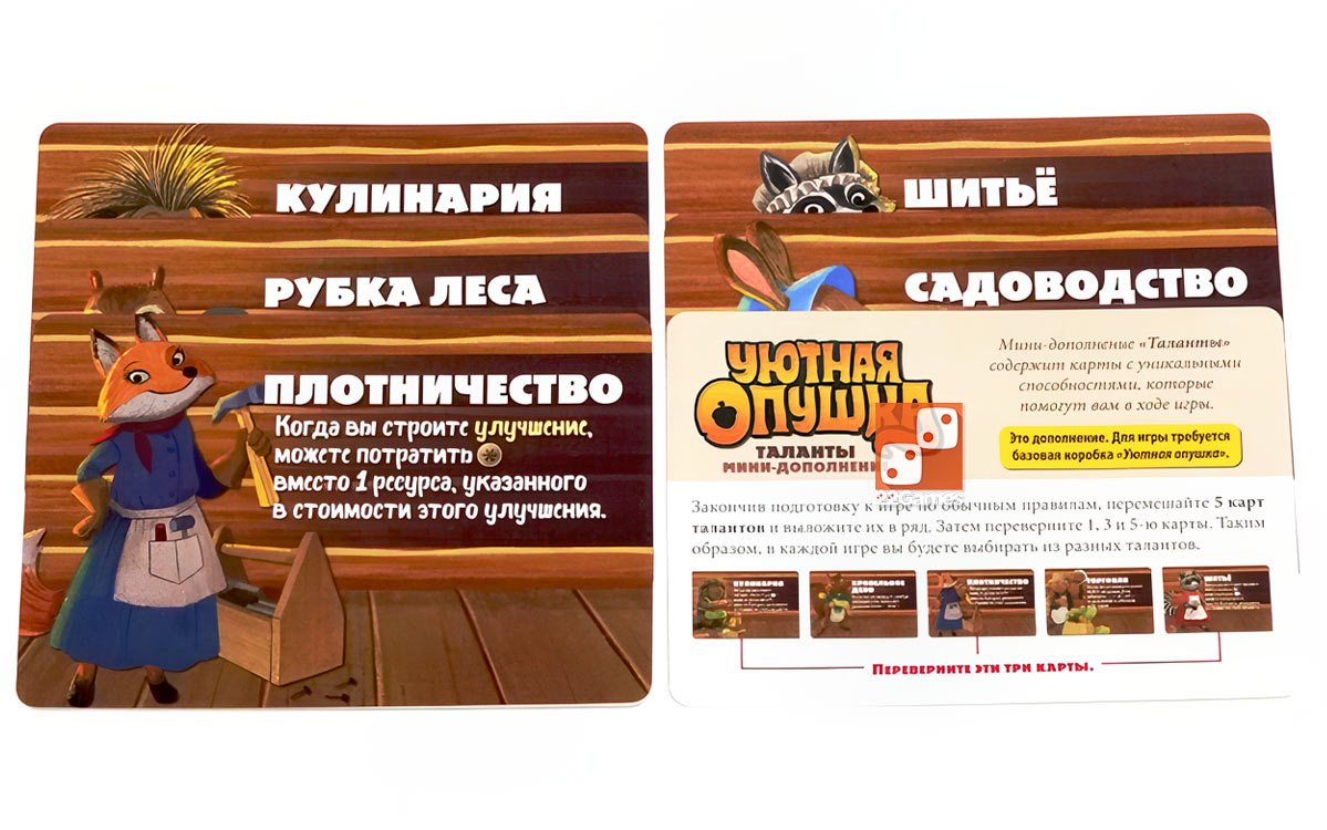 - Мини-дополнение «Таланты» содержит карты с уникальными способностями, которые помогут вам в ходе игры.