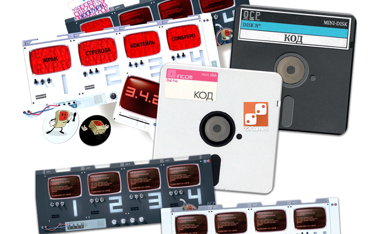 - 48 карточек кода (1 чёрная и 1 белая колода по 24 карты),