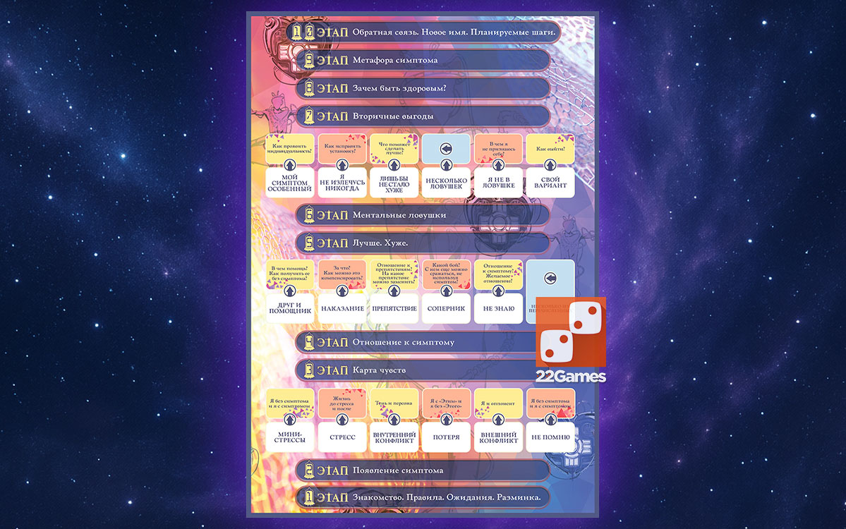 Это не самостоятельная игра, а дополнение. Совместимо с игрой Трансформационная психологическая игра «Психосоматика»