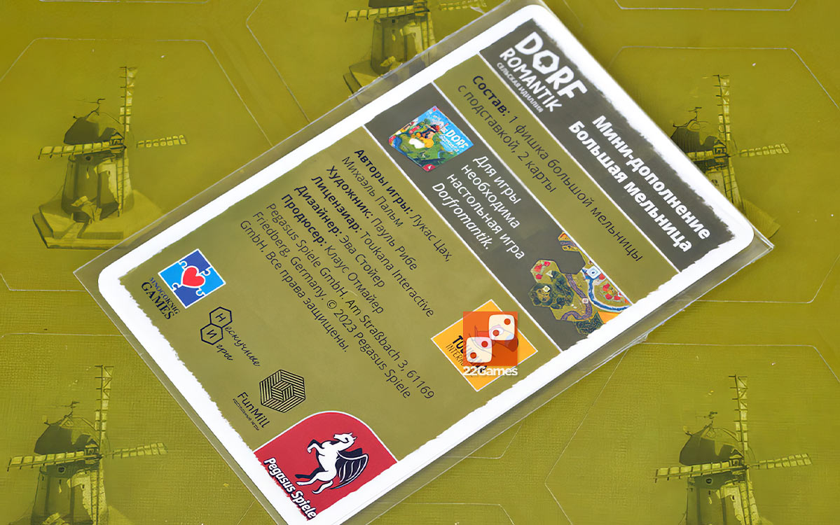 - Мини-дополнение «Большая Мельница»: 1 фишка с подставкой + 2 карты,