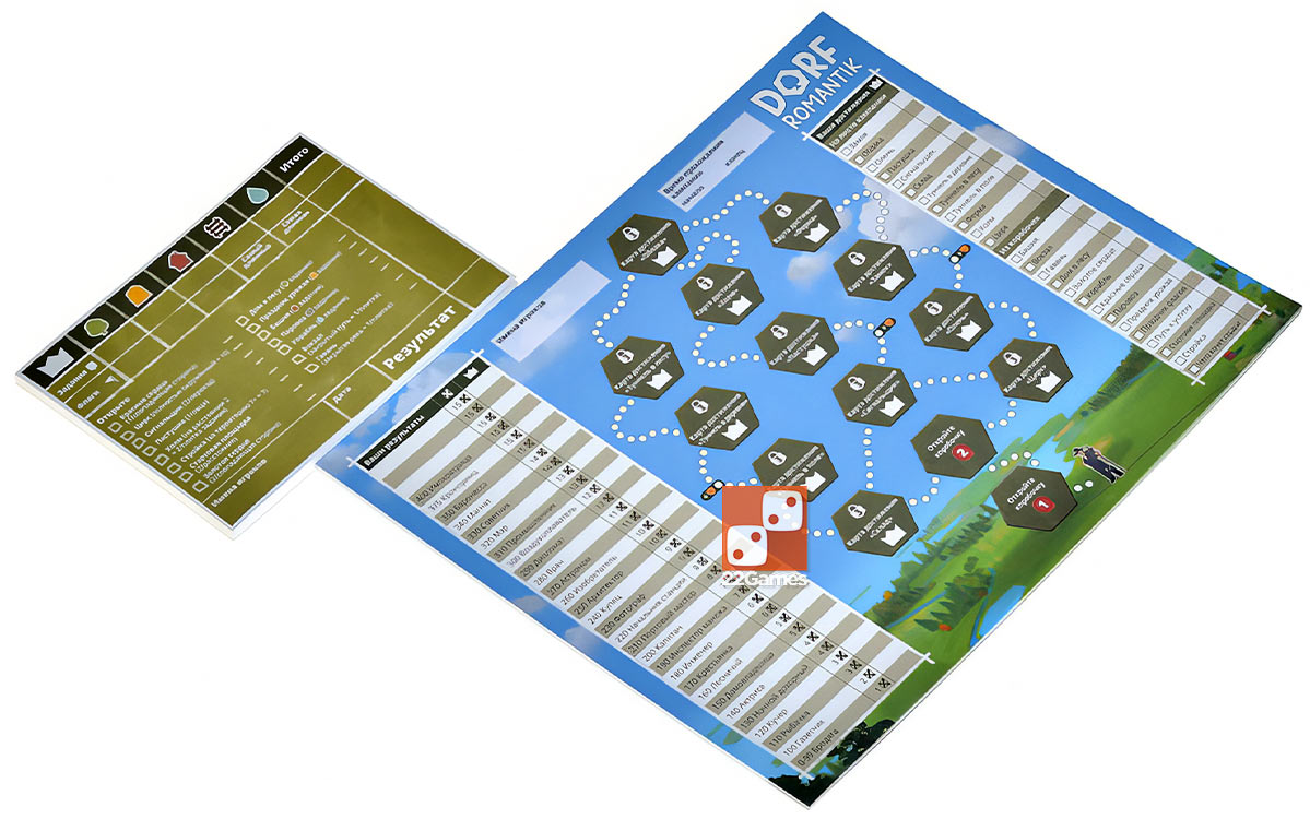 - 1 блокнот для подсчёта победных очков (50 двухсторонних листов),
