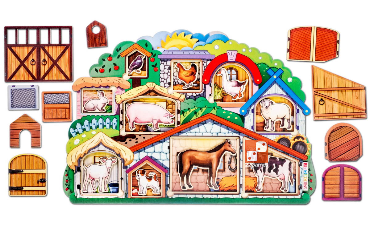 1. Игра «Ферма». Рассмотрите пазл вместе с ребенком. Предложите заглянуть внутрь, для этого попросите открыть все элементы верхнего слоя. Спросите, кто живет на ферме. Попросите найти и показать корову, собаку, курицу, кролика и т.д. Уточните, какие птицы есть на ферме. Вместе с ребенком придумайте клички для всех жителей фермы. Попросите ребенка достать всех животных из основания пазла.