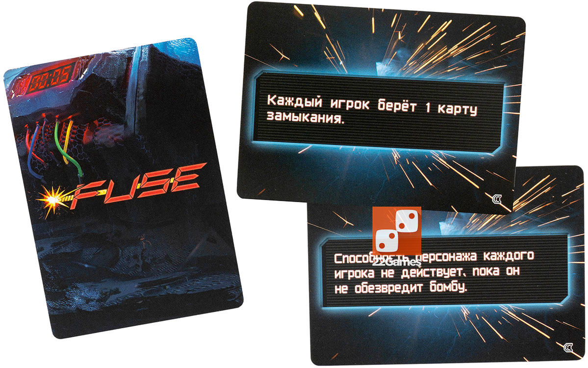 Брать со стола можно только тот кубик, для которого есть подходящее место на карте бомбы. Если игрок не может использовать свой кубик, происходит короткое замыкание, и он получает дополнительную карту с мини-заданием. Когда до взрыва остаются считанные секунды, эти замыкания просто сводят с ума!