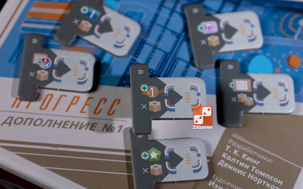 Дополнение «Прогресс» состоит из трёх модулей, которые можно добавлять в базовую игру по отдельности или в любых сочетаниях с модулями дополнения «Комфорт». Исключение составляют «Идеальные чертежи» и «Совмещение кают», которые не могут использоваться вместе, так как каждый из этих модулей заменяет наборы чертежей.