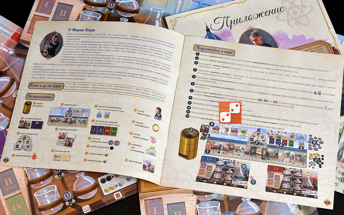 В коробке вы найдёте специальный буклет с историческими справками, который расскажет о жизни Марии Кюри, её встречах с коллегами вроде Альберта Эйнштейна, о двойной Нобелевской премии и о том, как наука изменила мир. Это делает игру не только увлекательной, но и познавательной – замечательным выбором для семей, преподавателей и всех, кто хочет объединить отдых с расширением кругозора.