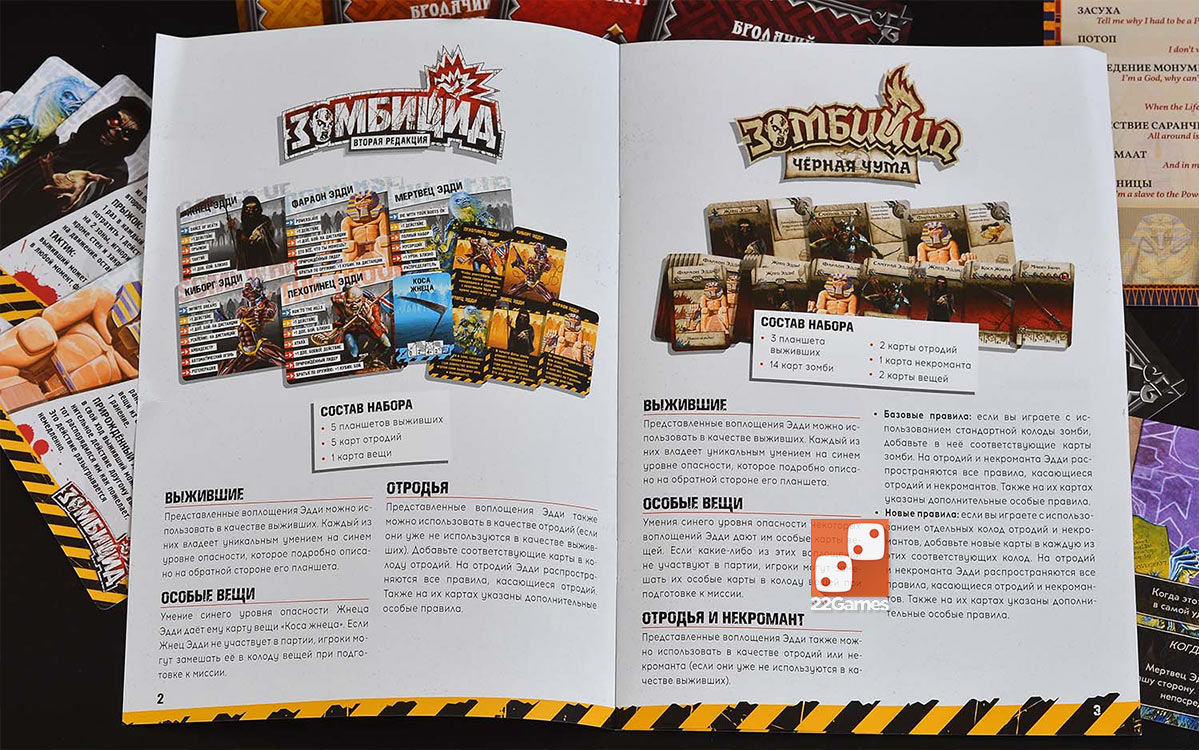 «Зомбицид: Iron Maiden. Набор №1» – это комплект фигурок и карт, совместимых сразу с несколькими играми таких известных серий, как «Зомбицид», «Ктулху: Смерть может умереть» и «Восходящее солнце». Благодаря этому набору вы сможете ворваться в эпические приключения вместе с разными воплощениями Эдди. Например, Самурая Эдди можно использовать в качестве выжившего или отродья в «Зомбицид: Чёрная чума» или в качестве монстра в «Восходящем солнце». Возьмёте ли вы бравого пехотинца или величественного фараона в свою команду или попытаетесь одолеть их в честной схватке? Решать только вам! Но что можно сказать наверняка – с Эдди каждая партия подарит вам совершенно новый игровой опыт и станет ещё круче!