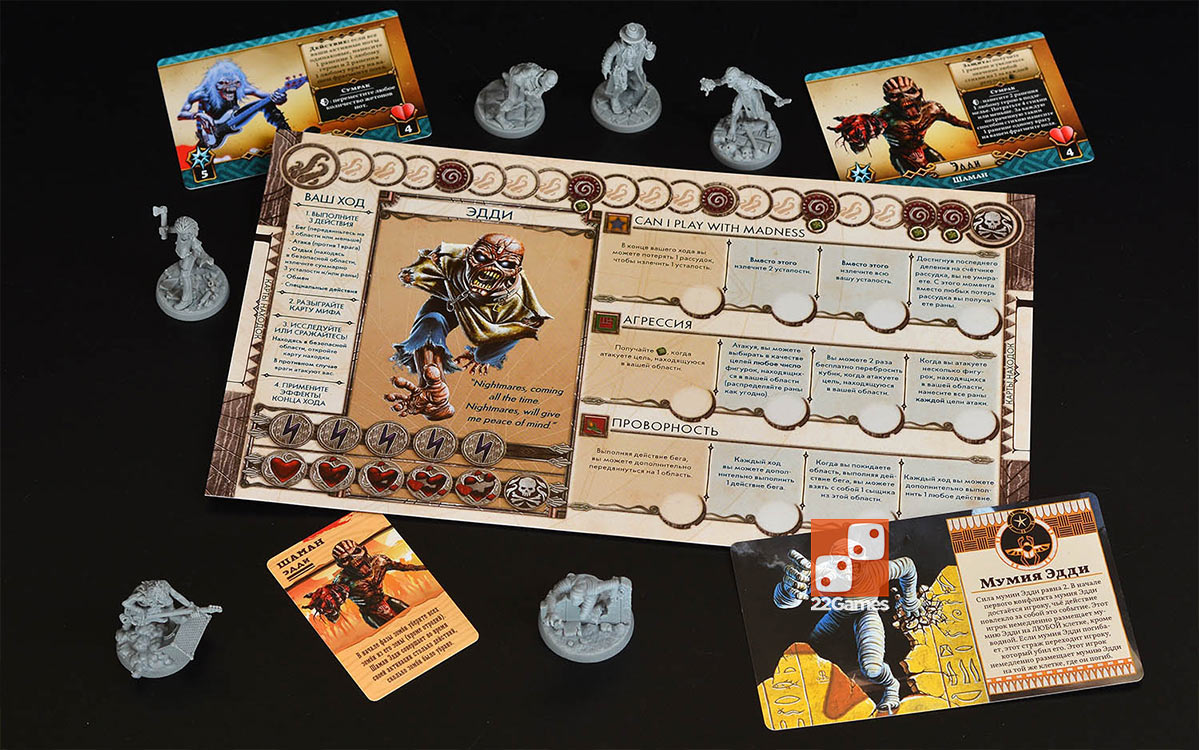 На всех обложка хэви-метал группы Iron Maiden изображён он – зомби, киборг, солдат, шаман, самурай, фараон и даже летучая мышь – Эдди. Этот бессменный маскот «Железной девы» внёс значительный вклад в узнаваемость группы и стал, пожалуй, одним из самых живучих (ха-ха) рокерских талисманов всех времён. Если вы хоть раз с интересом рассматривали образы Эдди на дисках, возможно, захотите видеть этого живчика не только на обложках, но и на игровом поле любимых настолок!