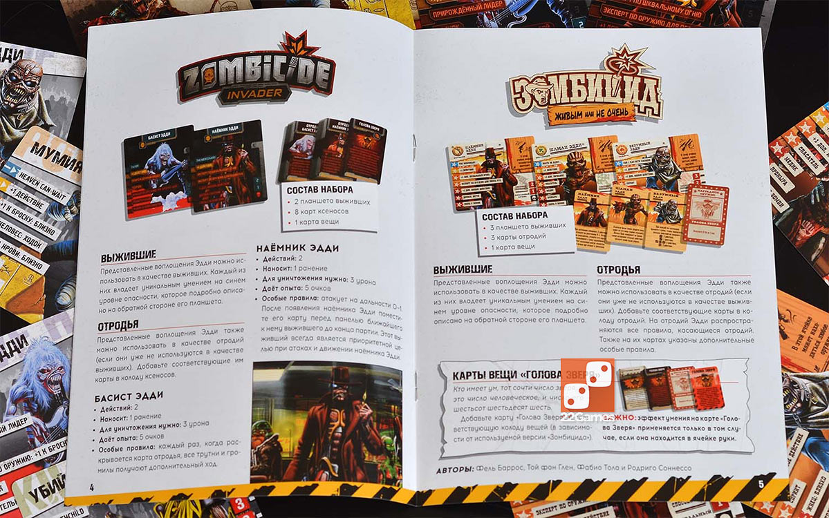 «Зомбицид: Iron Maiden. Набор №2» – это комплект фигурок и карт, совместимых сразу с несколькими играми таких известных серий, как «Зомбицид», «Кромешная тьма: Преисподняя» и «Анх: Боги Египта». Благодаря этому набору вы сможете ворваться в эпические приключения вместе с разными воплощениями Эдди. Например, Шамана Эдди можно использовать в качестве выжившего или некроманта в «Зомбицид: Чёрная чума», а Безумный Эдди отлично впишется в «Ктулху: Смерть может умереть» в качестве сыщика. Возьмёте ли вы древнюю мумию или хладнокровного наёмника в свою команду или попытаетесь одолеть их в честной схватке? Решать только вам! Но что можно сказать наверняка – с Эдди каждая партия подарит вам совершенно новый игровой опыт и станет ещё круче!