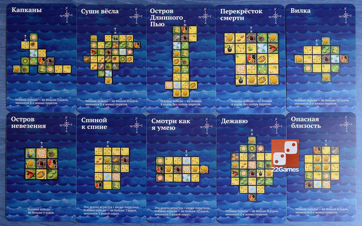 - 66 клеток с приключениями, из которых вы будете собирать острова архипелага,