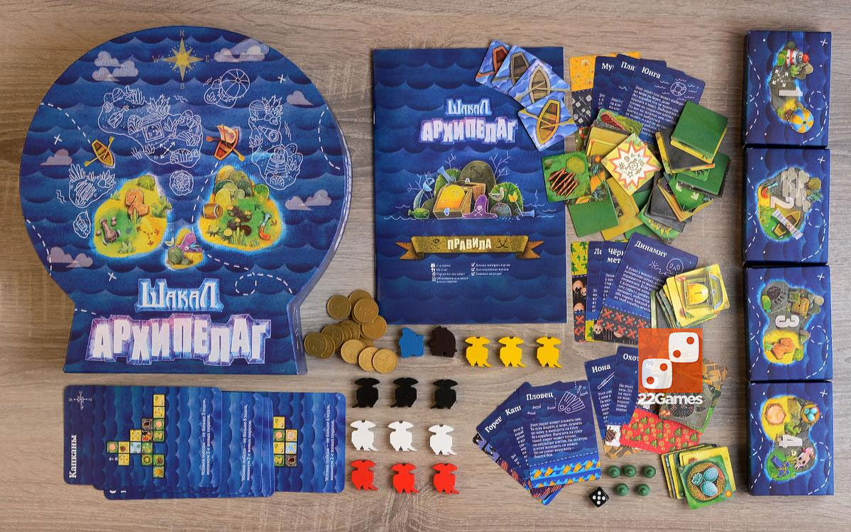 «Шакал: Архипелаг» в коробке в форме черепа – это расширенная версия «Архипелага» в квадратной коробке, которая включает в себя чуть больше компонентов, а именно: