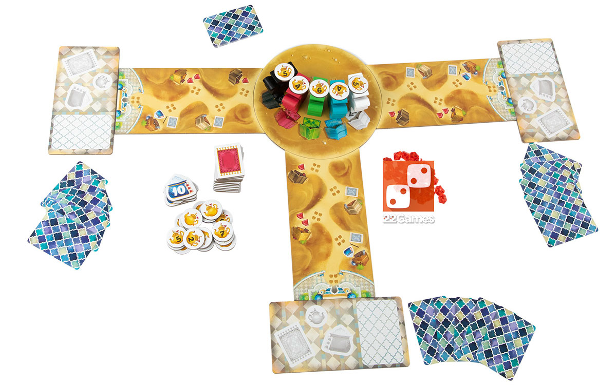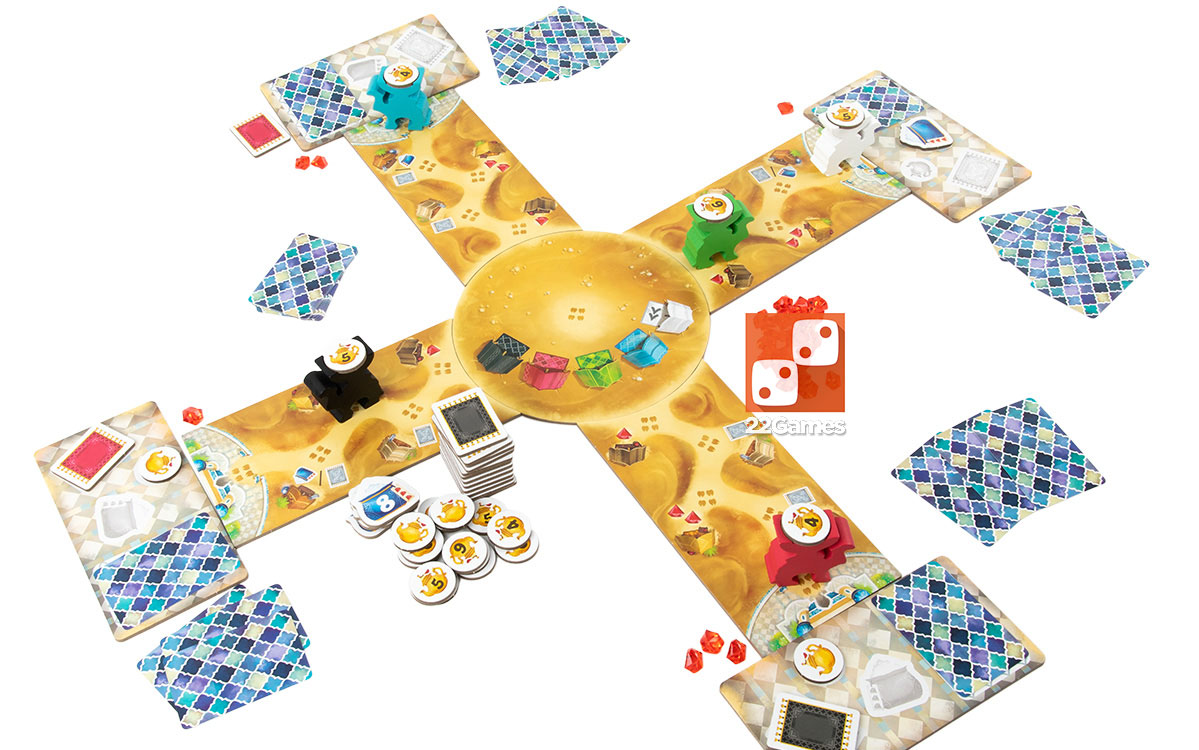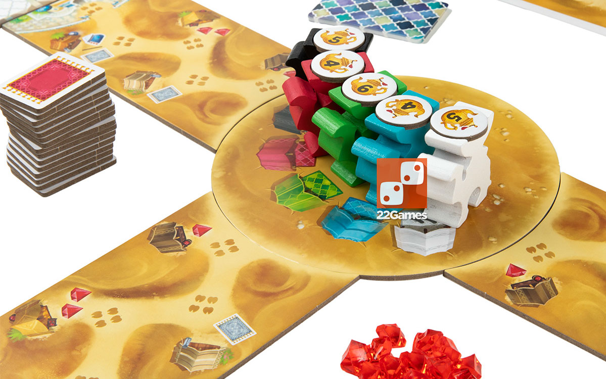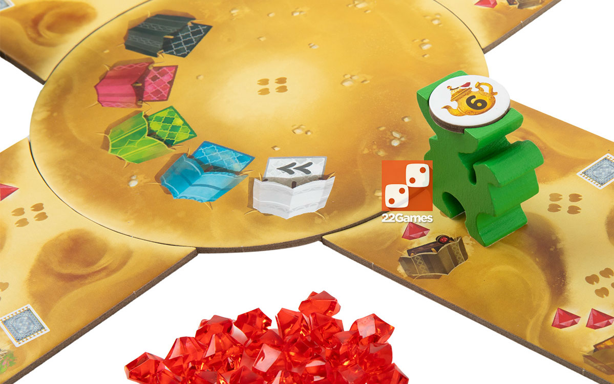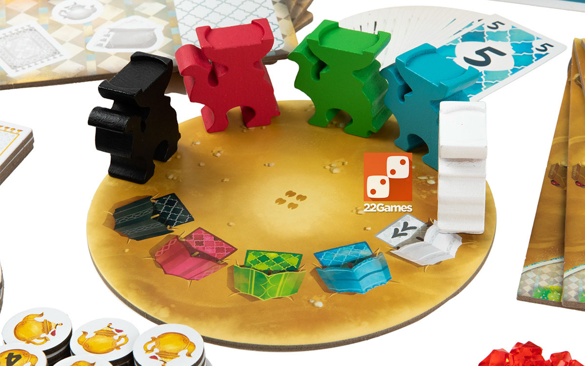 Во время каждого раунда вы постараетесь привлечь караван верблюдов с чаем на свой торговый пост. По пути караван пройдёт через торговые лавки, и вы сможете приобрести там ценные товары.