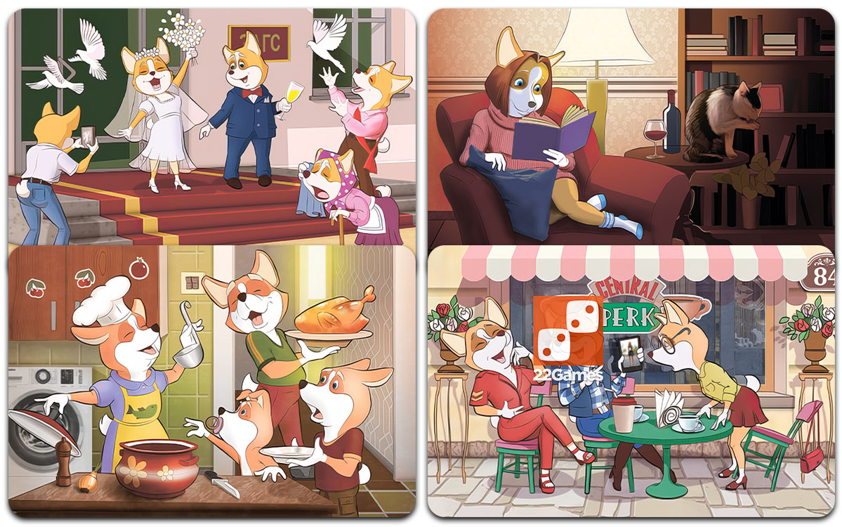 Карты одинаково хорошо раскрываются с мужчинами и женщинами, подростками и детьми — возрастных ограничений нет. Богатая галерея персонажей помогает каждому узнать в корги знакомые образы, эмоции, жизненные ситуации и способы взаимодействия.