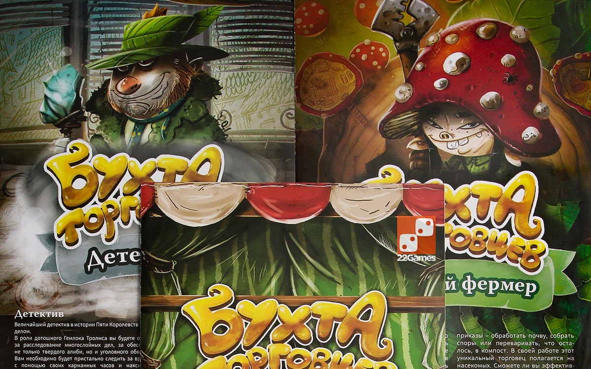 Внутри вы найдете четырех абсолютно новых торговцев: детектива, грибного фермера, кондитера и ныряльщика за сокровищами. Каждый из них со своими уникальными правилами и компонентами, и каждый подарит новый опыт и новые впечатления, а также расширит для вас возможности игры. Детектив использует прозрачные накладываемые друг на друга карты, чтобы разгадывать дела и продавать алиби. Грибной фермер использует подручных насекомых для распространения спор в своем грибном огороде. Кондитер использует систему соединенных шестеренок для управления миксерами, чтобы подготовить тесто для печи, подогреваемой пламенем дракона. Ныряльщик же должен сдерживать свою жадность при попытках набрать все больше сокровищ за один заплыв.
