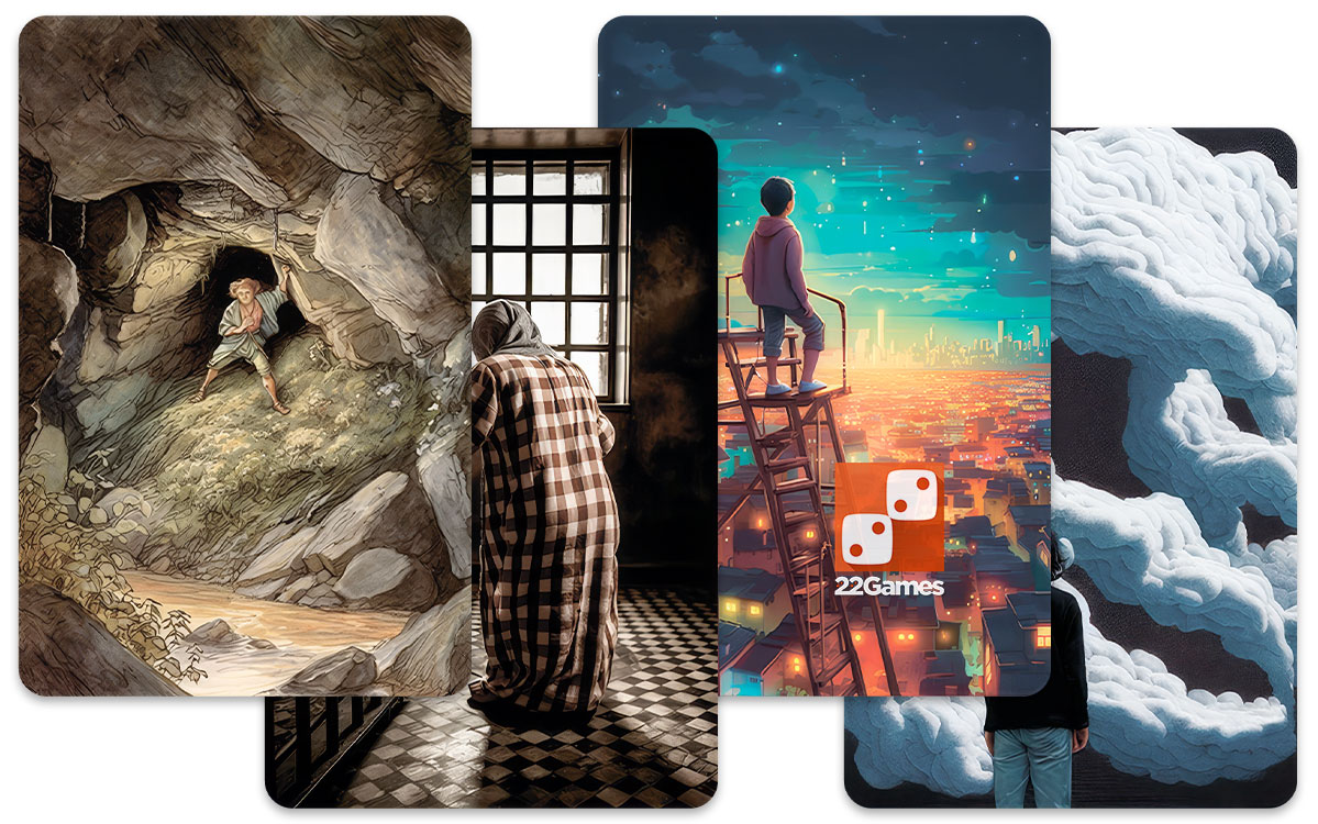 Алгоритм: Взакрытую достаньте по одной карте на каждый вопрос. Поочередно раскройте.