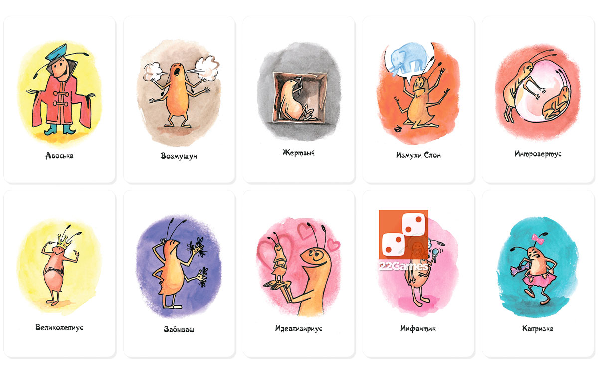 Инструкция: Определитесь с проблемой (задачей), которую Вы хотите решить. В открытую просмотрите все карты колоды и найдите таракана, который ответственен за эту проблему у Вас. Вы можете выбрать одного таракана или столько, сколько посчитаете правильным в Вашем случае.