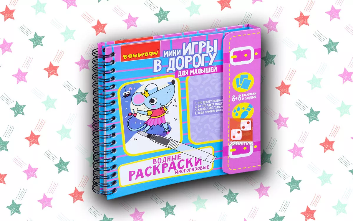 К каждому рисунку прилагаются различные задания, что делает процесс еще более увлекательным и полезным! 8 сюжетов для раскрашивания и 8 карт с вопросами к ним, кисть со встроенной емкостью для воды. Весь набор компактно упакован в мини-книгу с магнитной застежкой. Возьмите мини-игры в дорогу – будет весело и полезно.