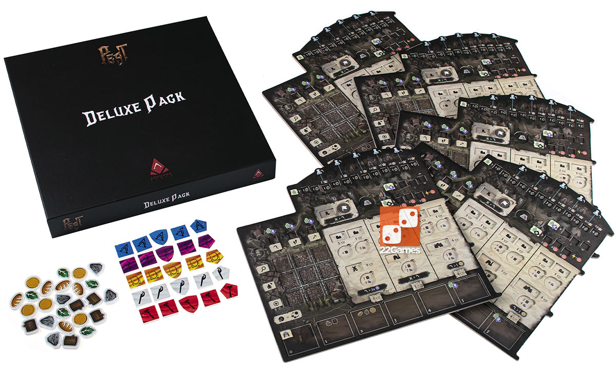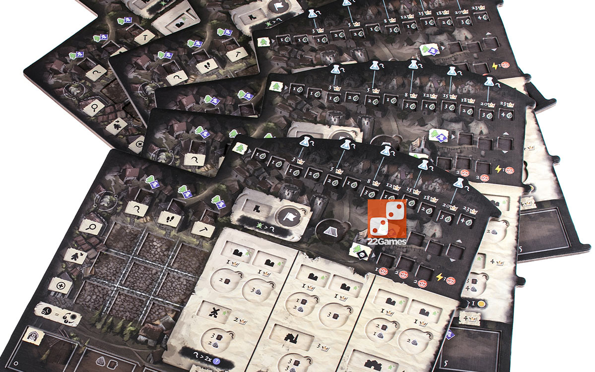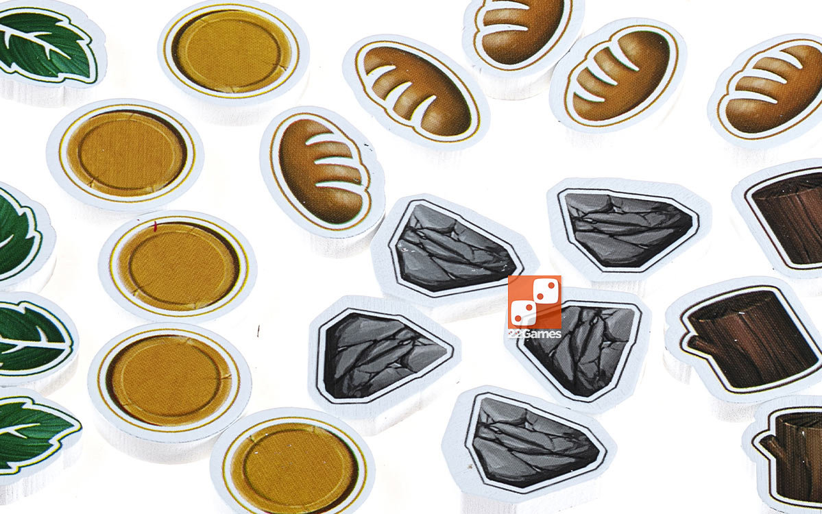 В этот набор входят двухслойные планшеты игроков, деревянные жетоны ресурсов и маркеров игроков с трафаретной печатью. Обратите внимание: текст на коробке на английском языке, но внутри только языконезависимые компоненты.