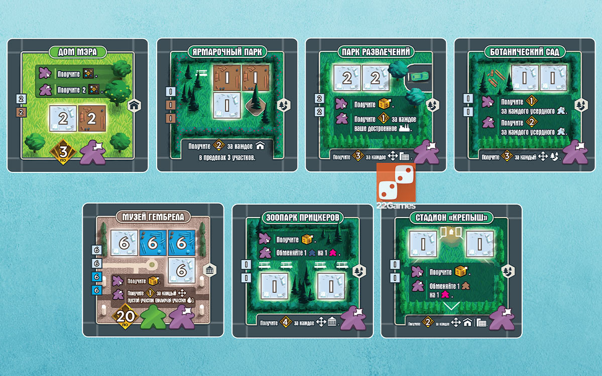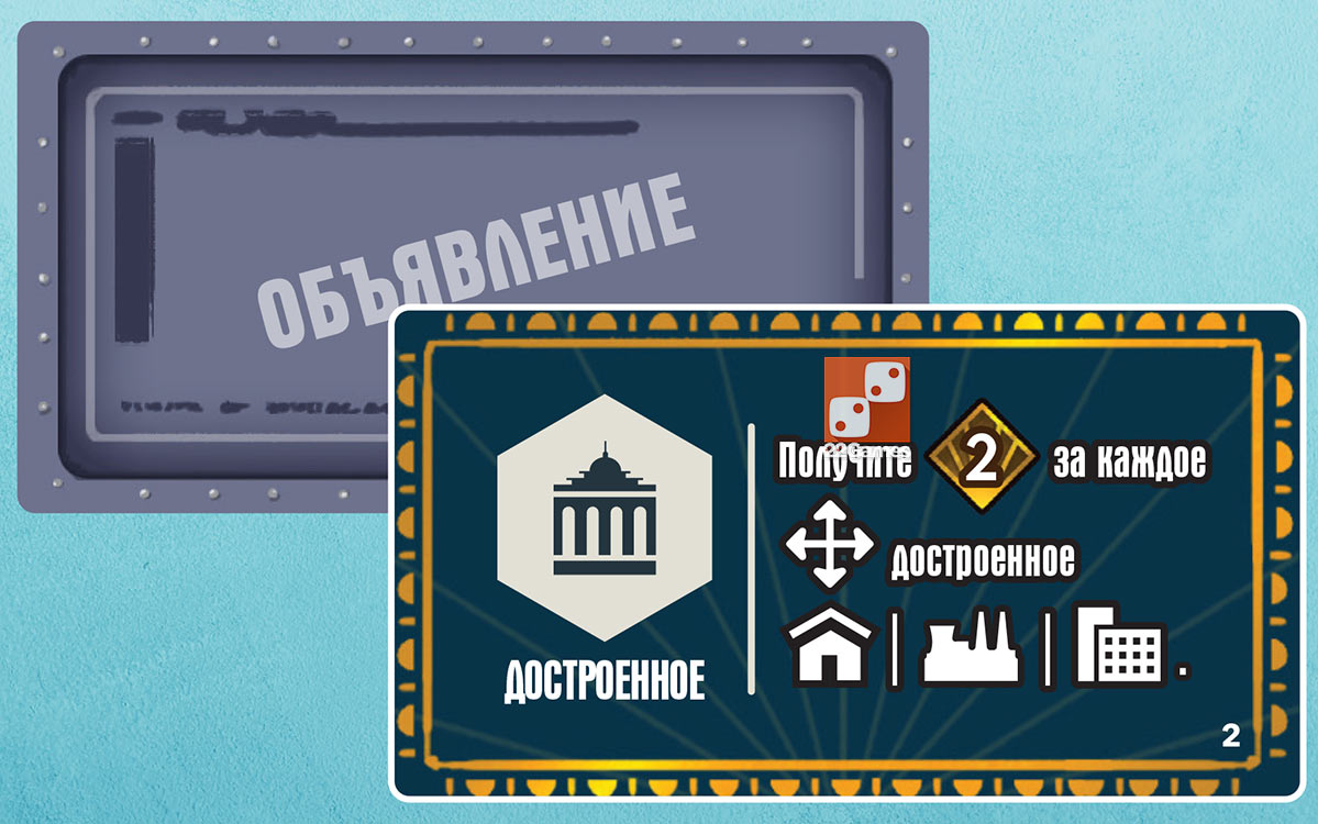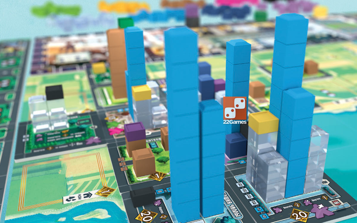Стройматериалы – это пластиковые кубики. Вы будете складывать их друг на друга, возводя объёмные здания на карте города. Достроенные здания повышают ваш престиж и приносят новых работников, благодаря которым вы сможете возводить более высокие здания, включая небоскрёбы. Эти здания определят городской ландшафт на десятилетия и даже столетия вперёд!
