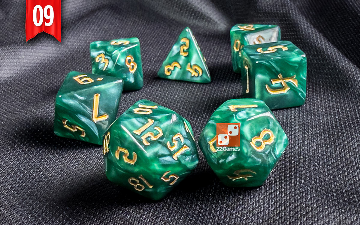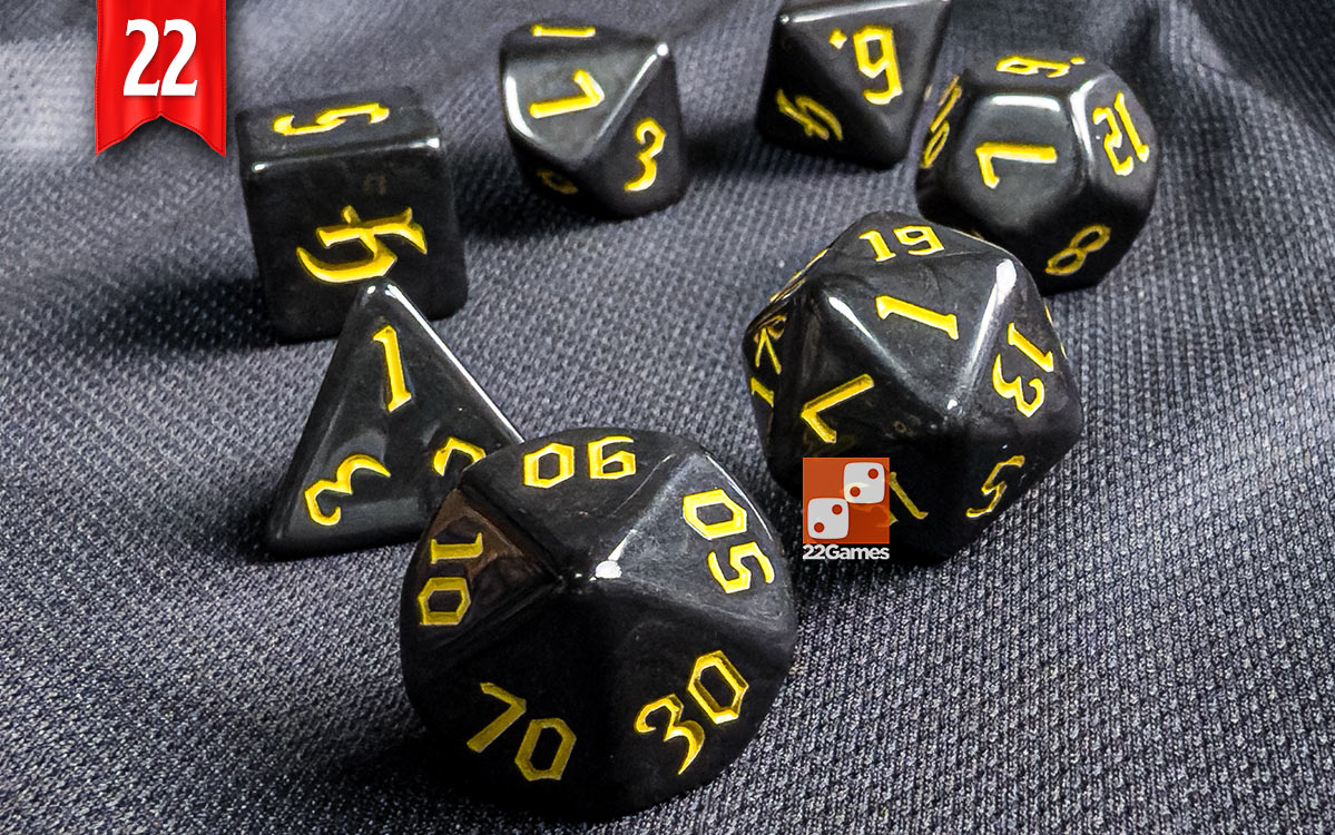 | D10 / 10-гранный | 22 мм | Тяжёлый урон, проверки в системах на базе 10 |