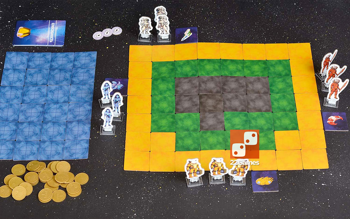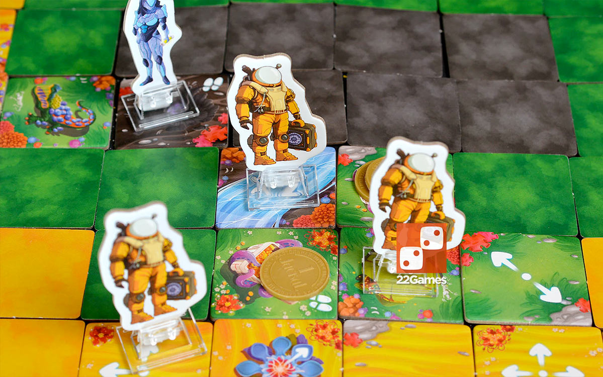 Партия начинается с того, что игроки высаживают своих космонавтов на таинственную планету, собранную из закрытых тайлов. В свой ход участник выбирает одного из своих персонажей и перемещает его по поверхности, исследуя новые клетки. Каждый шаг может обернуться как удачей, так и западнёй – ведь под тайлами скрываются телепорты, ловушки, лифты, золото и даже входы на космическую станцию. Найденные золотые слитки нужно донести до собственного корабля, но соперники могут перехватить груз или устроить засаду. Некоторые клетки позволяют получить артефакты, дающие специальные способности или преимущество в передвижении. Чтобы победить, придётся рисковать, хитрить, рассчитывать ходы и выбирать – искать золото на поверхности или отправиться на орбитальную станцию за артефактами. Каждый ход является шагом в неизвестность, где ваш выбор определяет судьбу экспедиции.