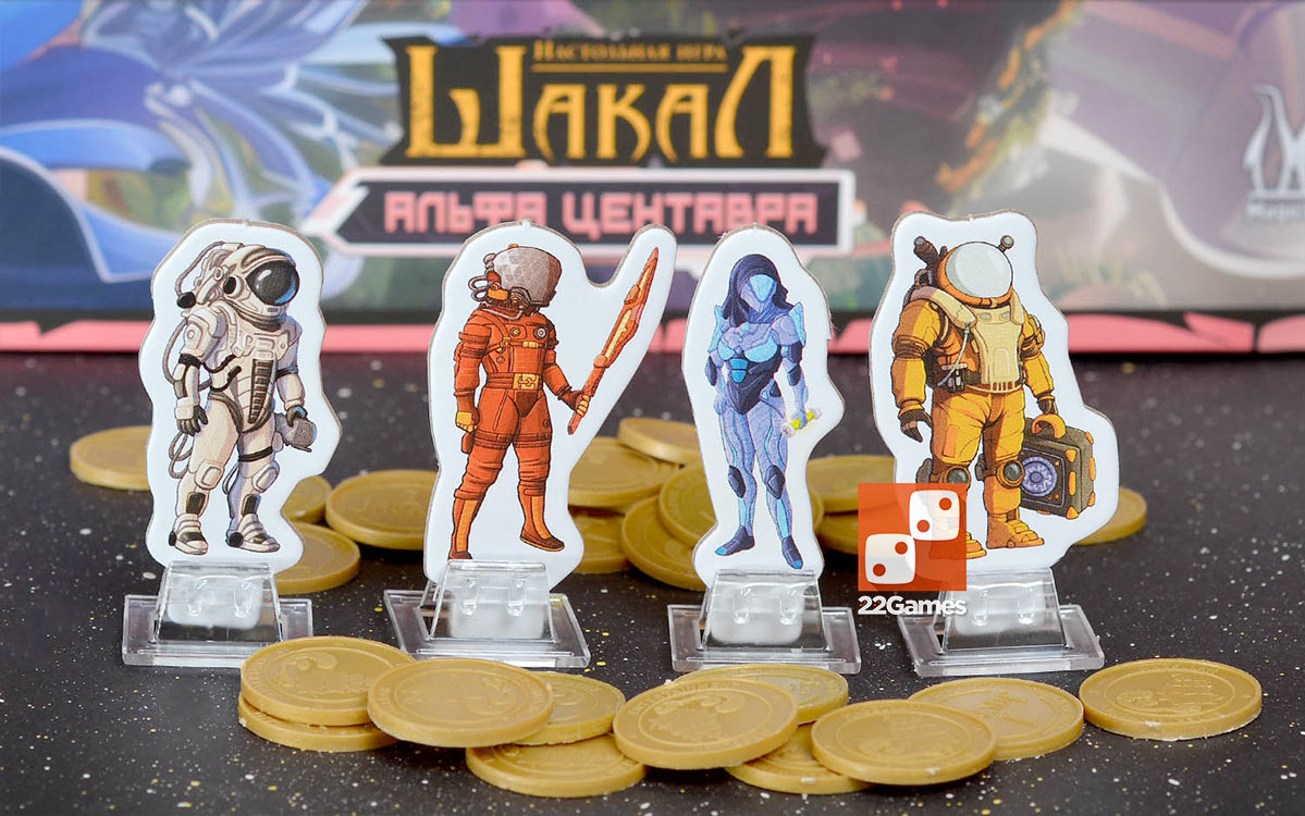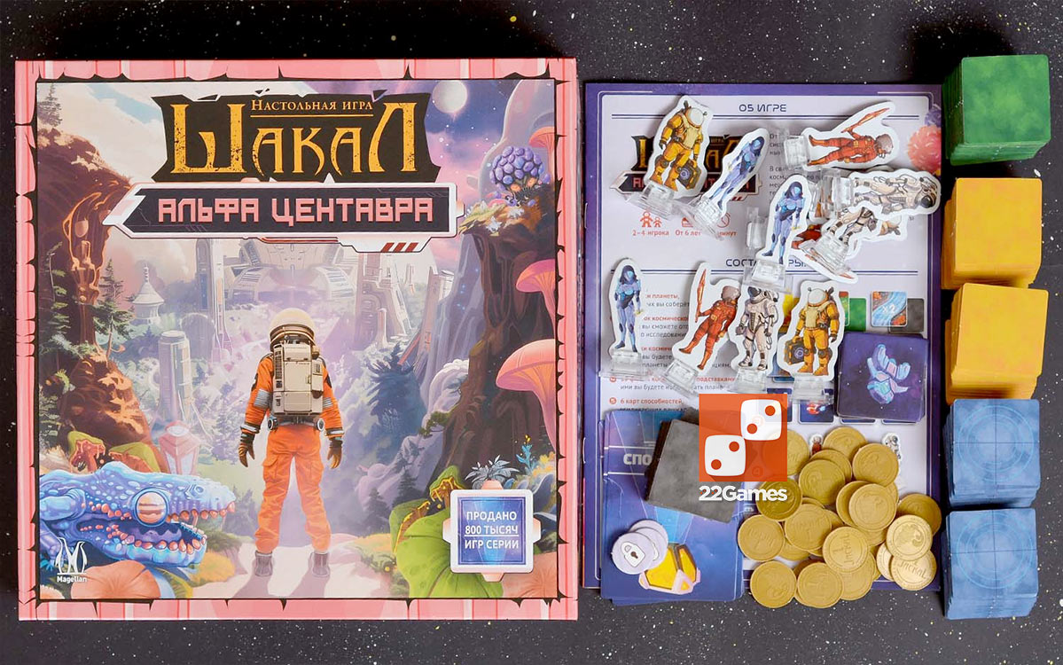 «Шакал: Альфа Центавра» — самостоятельная настольная игра от создателей культового «Шакала», но теперь в футуристическом космосеттинге. Игроки исследуют случайно составленную планету, открывая тайлы и отыскивая сокровища. Главная цель – найти золото и доставить его на свой корабль быстрее других. Поверхность планеты скрывает ловушки и находки, а над ней парит заброшенная станция, где можно найти артефакты, наделяющие ваших космонавтов особыми способностями. Игра подойдёт для семей, друзей и всех, кто любит исследования и приключения. Красочные компоненты, особые способности и модульное игровое поле делают эту настолку по-настоящему реиграбельной. Отличный выбор для совместных вечеров и весёлых сражений в космосе!