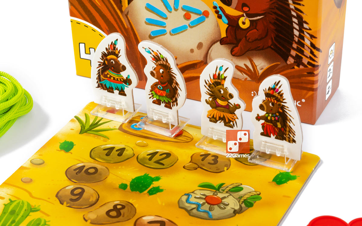 Выберите карточки подходящей сложности (или оставьте все карточки), перемешайте их и положите стопкой в центре стола лицом вниз. Выберите фигурки дикобразов и поставьте их на стартовую клетку поля для подсчёта очков. Игроки тянут по одной карточки из стопки.