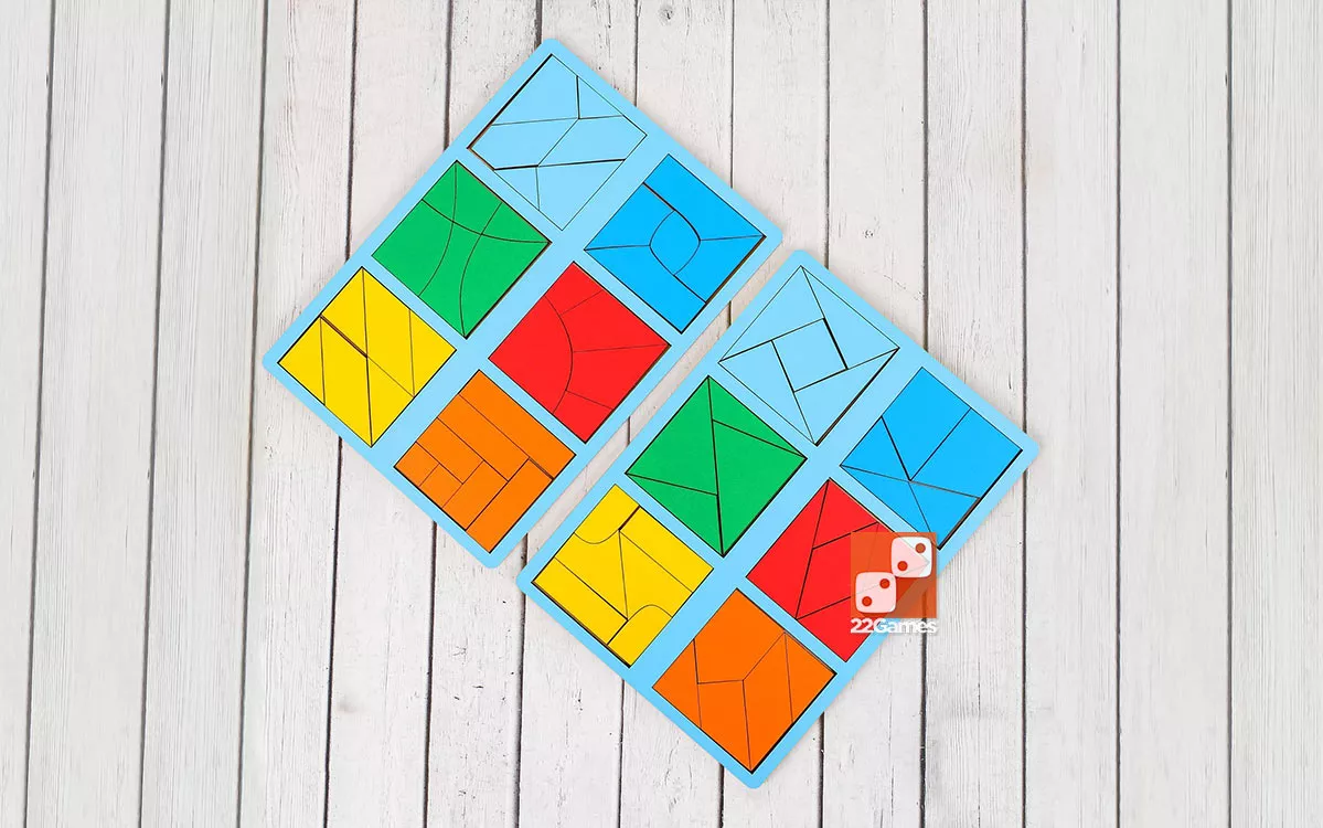 Игра (3 уровень сложности) состоит из 12 разноцветных квадратов, по-разному разделенными на на 4, 5, 6 и 7 частей. Основная задача игры – складывание целых квадратов из одноцветных фрагментов различной формы, начиная с самых простых.