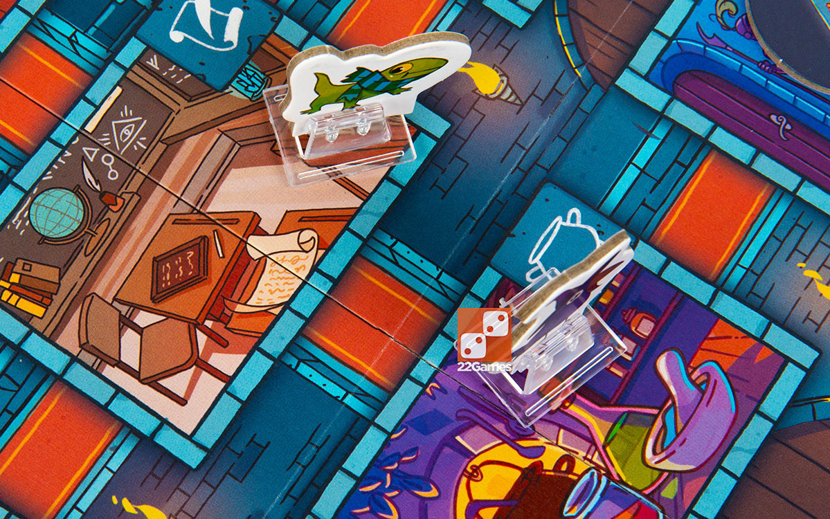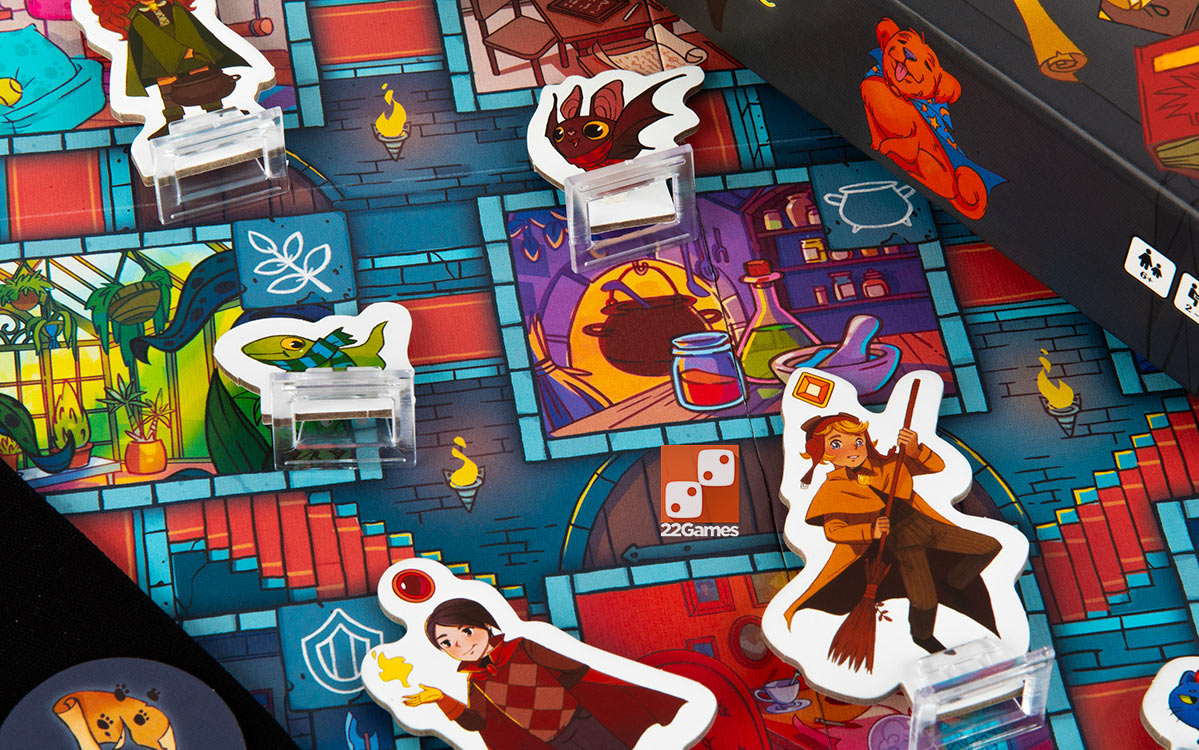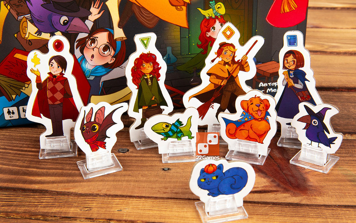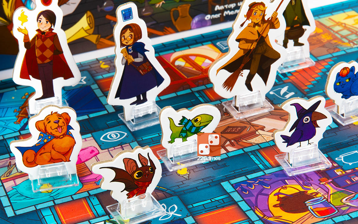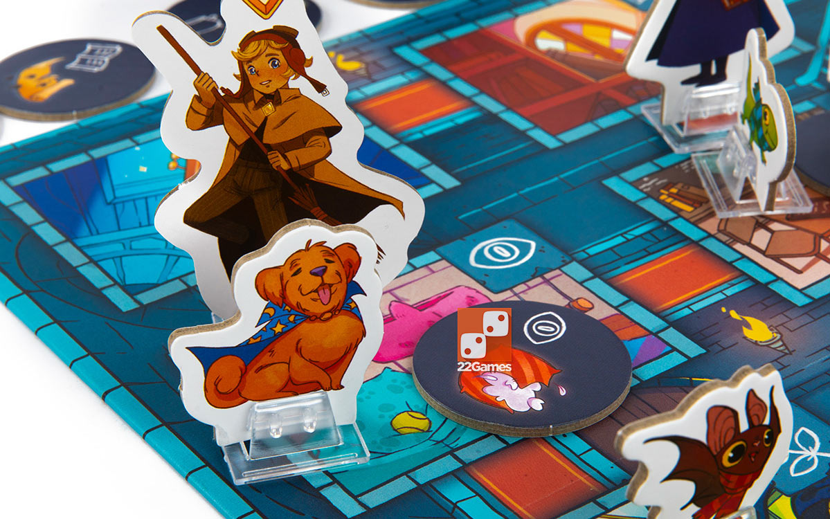 - Игроки могут совершить до 3 перемещений на всех волшебников. При этом каждый волшебник может переносить с собой 1 или 2 жетона шалости.