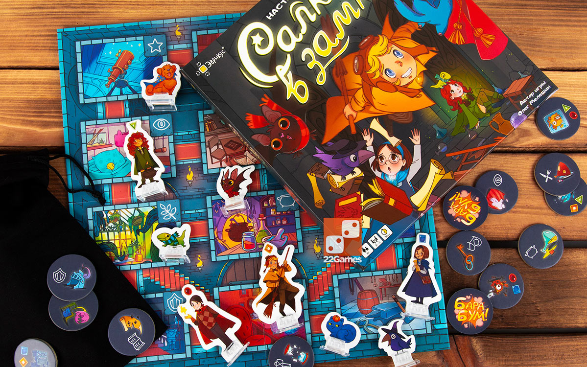 «Салки в замке» — это детско-семейная игра с механикой «один-против-всех», которая разворачивается в атмосфере волшебства и магии в стенах старинного замка. Один игрок возьмёт на себя роль озорных животных-фамильяров, которые будут перемещаться по комнатам замка, стараясь ускользнуть от хозяев и при этом устроить как можно больше беспорядка. Остальные же игроки станут волшебниками, прикладывающими все усилия, чтобы поймать своих питомцев. Хитрость, планирование, работа в команде, умение просчитать противника — всё это обязательно понадобится вам, чтобы выиграть в этой замечательной настольной игре. Игра отлично подходит для партий взрослого с детьми, ведь тут не придётся поддаваться.