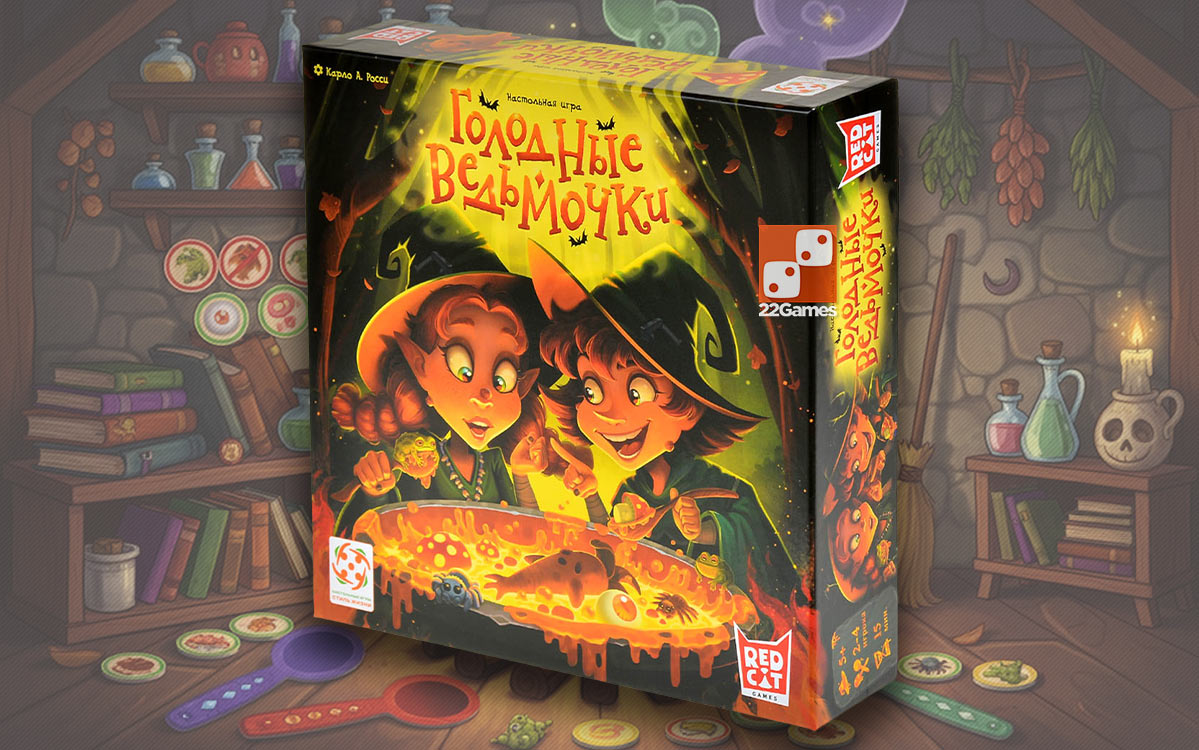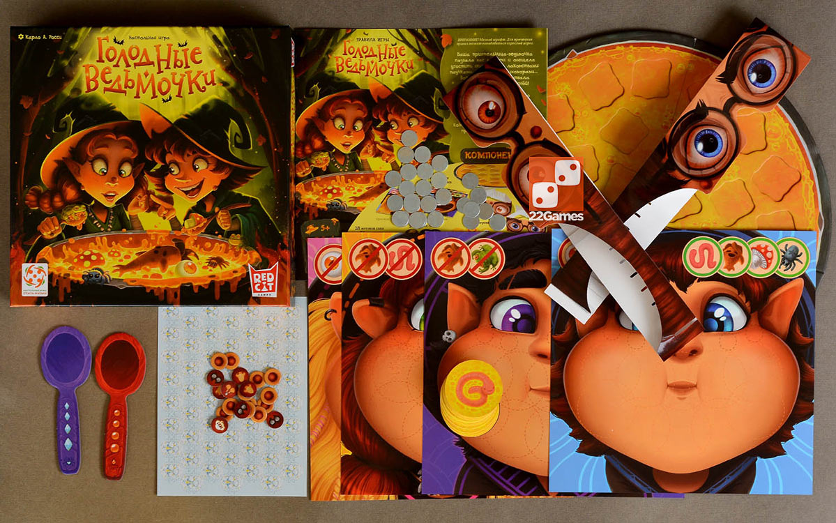 «Голодные ведьмочки» – быстрая и весёлая игра для детей и взрослых. Она поможет развить у малышей реакцию, внимание и ловкость, а главное – подарит море смеха и превратит обычный вечер в маленький волшебный праздник! Перевоплотитесь в очаровательных ведьмочек и хитрых колдунов (для этого в комплекте к игре идут забавные очки, а вот мантию и остроконечную шляпу вам придётся искать самим) и попытайте удачу, вылавливая из бурлящего котла карточки-лакомства при помощи магнитных ложечек.