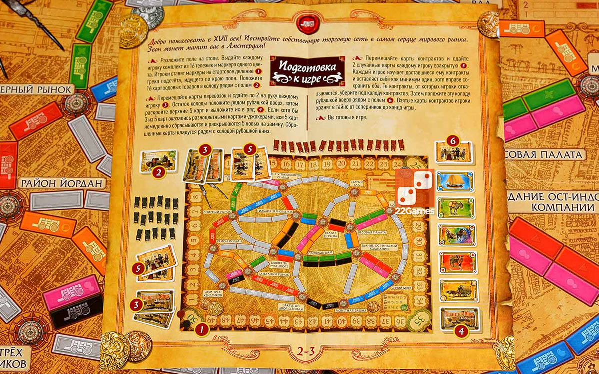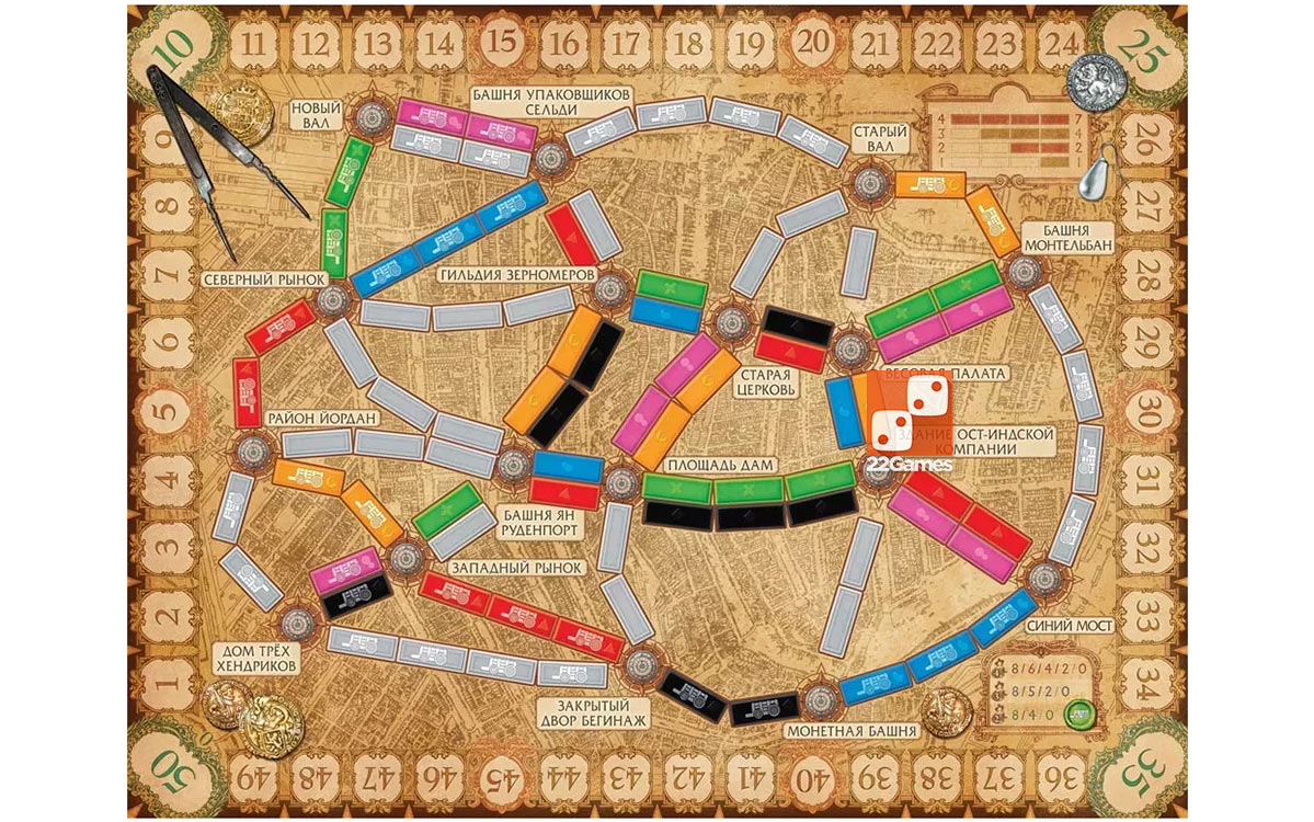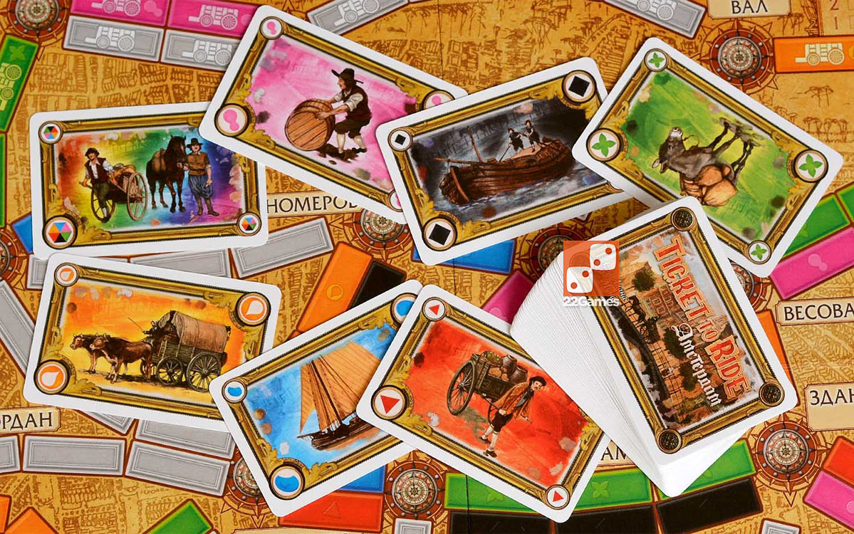 Карты перевозок соответствуют цветам путей на карте Амстердама. Чтобы пройти путь, необходимо сбросить с руки нужное количество карт одного цвета и занять его своими тележками. Джокеры могут заменять карты любого цвета. Некоторые пути серого цвета – для них допустим любой единообразный цвет. Каждый пройденный путь приносит победные очки в зависимости от его длины.