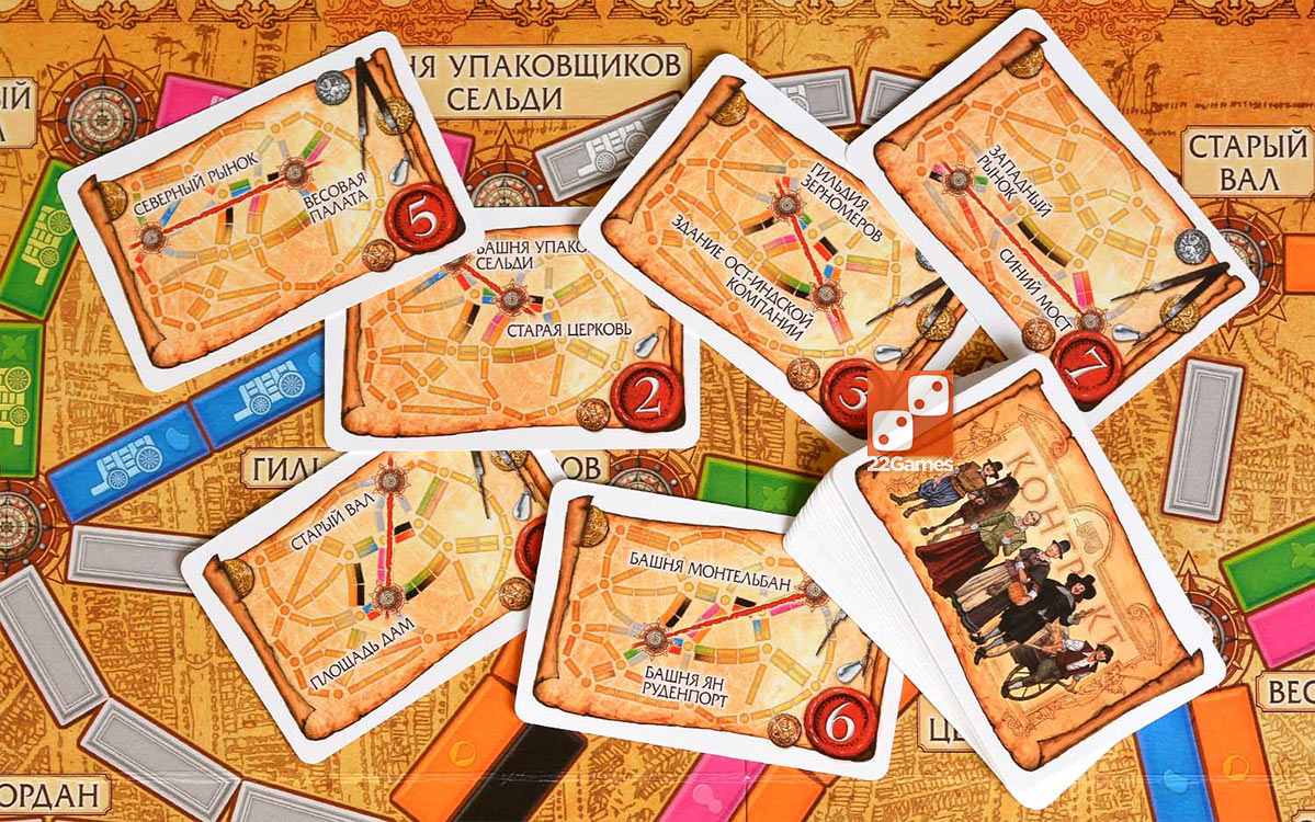 Если путь содержит символ тележки, игрок дополнительно получает одну карту ходовых товаров. Эти карты в конце игры приносят бонусные очки – чем больше их у вас, тем выше шанс занять призовое место в этой категории.