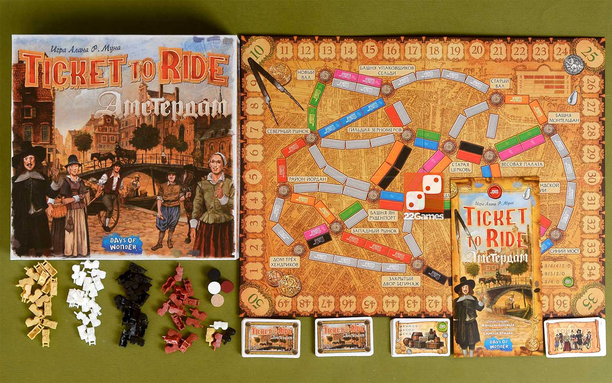 «Ticket to Ride: Амстердам» – это динамичная и компактная настольная игра из любимой многими серии, где вы окажетесь в самом сердце Нидерландов во времена торгового бума XVII века! Как и всегда, ваша цель – прокладывать маршруты, охотиться за выгодными контрактами и, как следствие, приобретать ценные товары, наполняя свои склады сокровищами со всего света. Игра сочетает в себе приятную стратегию и лёгкость освоения, ведь чтобы понять правила, вам хватит всего несколько минут! Благодаря этому «Амстердам» будет интересен как новичкам, так и опытным игрокам, а также прекрасно подойдёт как для дружеских партий, так и для семейных вечеров. Погружайтесь в атмосферу Золотого века, опережайте соперников и отправляйтесь в увлекательное путешествие, в конце которого вас ждут богатства и слава!