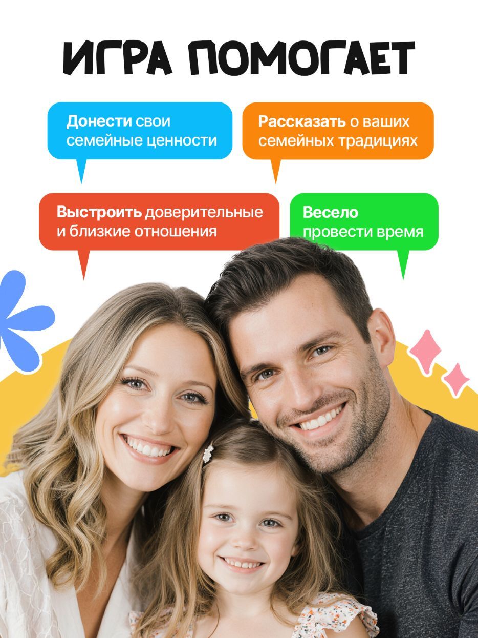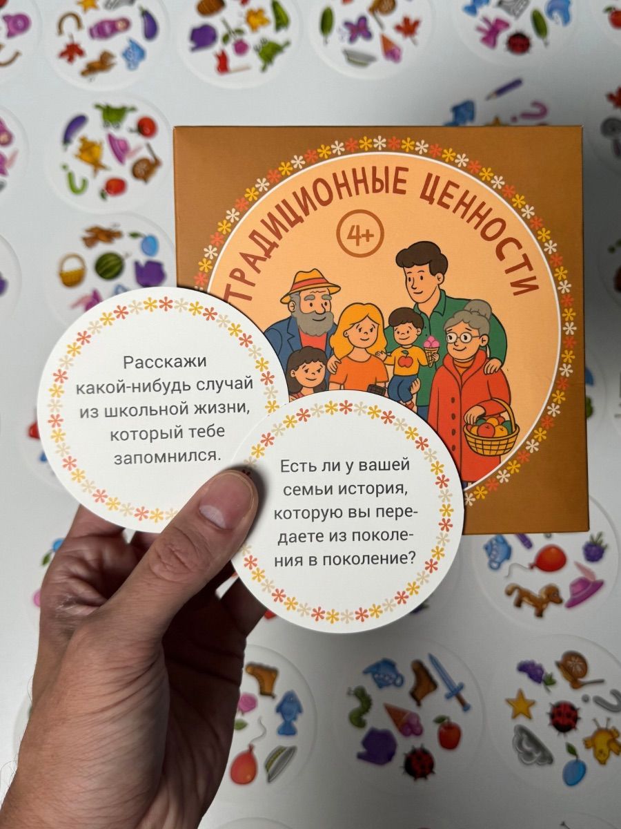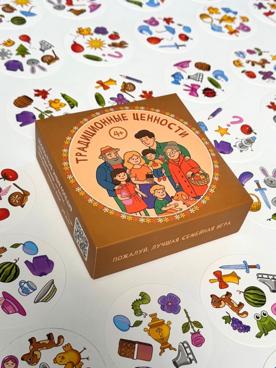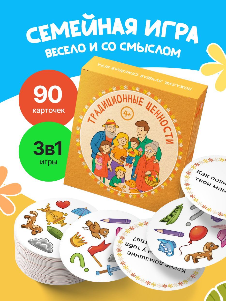 Настольная игра «Традиционные ценности» – это увлекательная развивающая игра для детей от 4 лет и старше. С помощью этой психологической игры маленькие игроки смогут развивать логику и внимательность, а также знакомиться с традициями своей семьи в дружеской атмосфере.