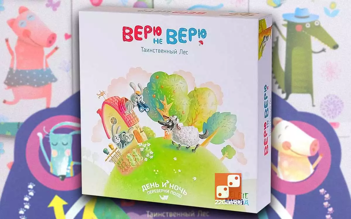 «Верю не Верю: Таинственный Лес» – простая и живописная игра с потрясающими картинками для детей и взрослых. Перед игрой хочется сначала рассмотреть всех животных – так здорово они нарисованы. А сама партия может длиться от 10 минут до получаса – смотря, как вы любите играть. Правила простые – угадывать животных на закрытых картах, доверяя или нет тому, что говорят хозяева карт. Для детей от пяти лет это уже отличный тренажёр распознавания и выражения эмоций.