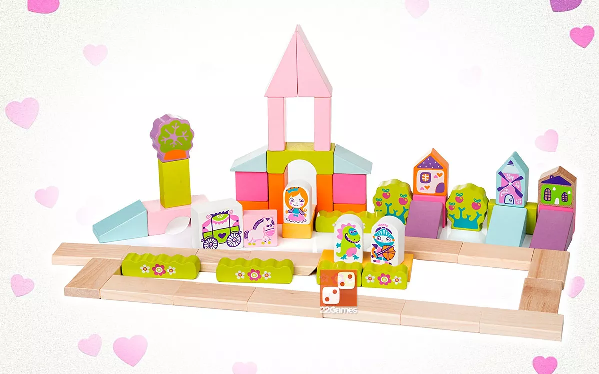 Возводя фантастический замок, малышка тренирует внимательность, логическое и пространственное мышление, а также знакомится с различными геометрическими формами и цветами. Крутя в руках гладкие деревянные блоки и ставя их один на другой, она улучшает мелкую моторику и оттачивает координацию движений.