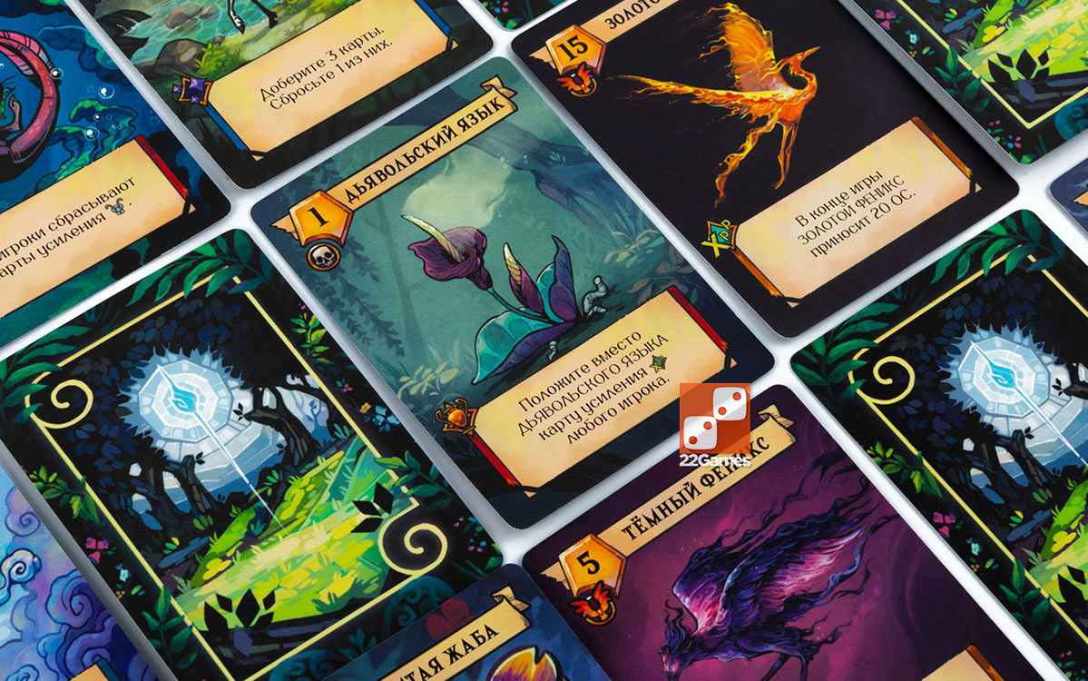«Волшебники лесных чащоб» – это соревновательная игра, в которой игроки возьмут на себя роли лесных чародеев, крошечных, но весьма могущественных, и будут призывать различных магических существ, самое сильное из которых одержит верх над соперниками. Одно существо – это ваш претендент, и именно чемпионы будут сравниваться между собой по силе в конце раунда. Однако вы можете усилить своего претендента или, наоборот, ослабить претендентов соперников, играя карты усиления. Всего вы сможете сыграть до 3 карт усиления, которые дают вашему претенденту дополнительную силу, а также могут обладать различными полезными эффектами, способными изменить ситуацию на игровом столе.